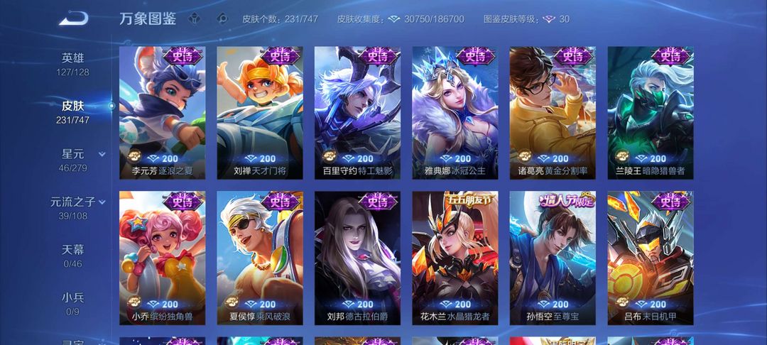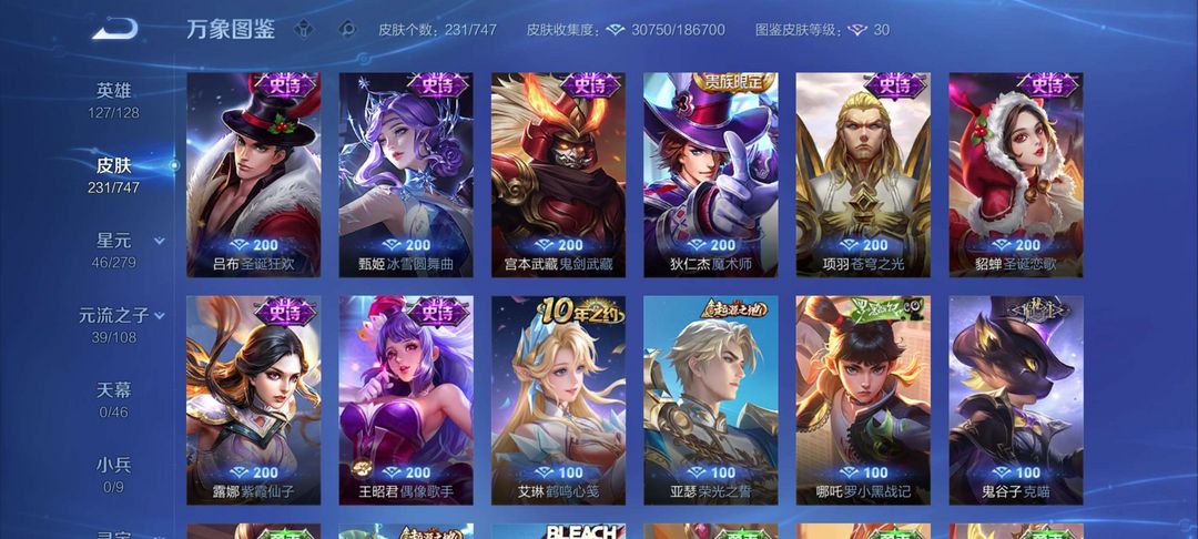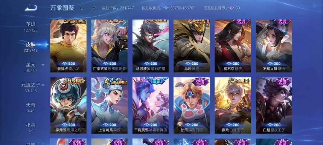 【非云直上】537满皮满典藏12星元◎鲁班新皮◎虞姬星元◎天使星元◎白金战神◎妲己绝版星元