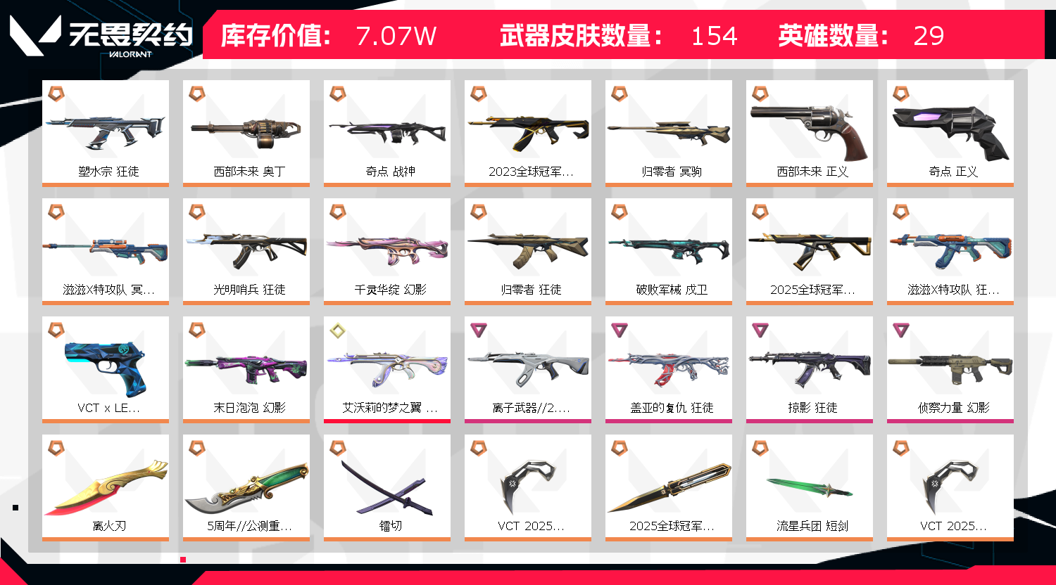 秒解冻🔥六限定大库🔥离火刃 23冠狂徒 25套 VCT爪 🔥镭切 嘟昂拳套 🔥黑铁青铜