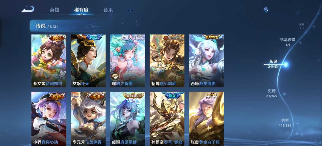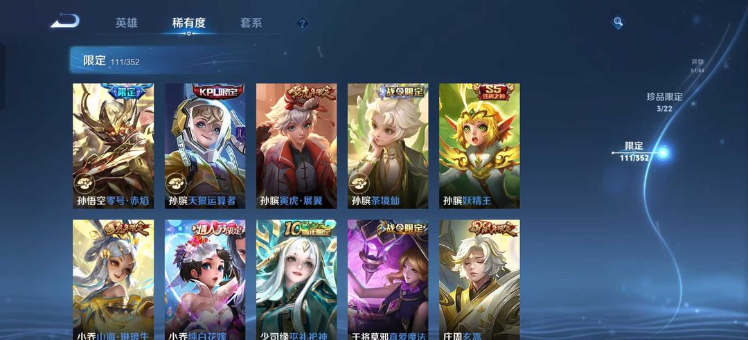 v10、12水539皮、死亡执政官、刘备星传说时之思念、小兵皮肤大耳狗甜茶、瑶无双真我赫兹、愿照·九州拓、怪盗基德、画中仙、至尊宝、凤求凰、神威、天魔缭乱