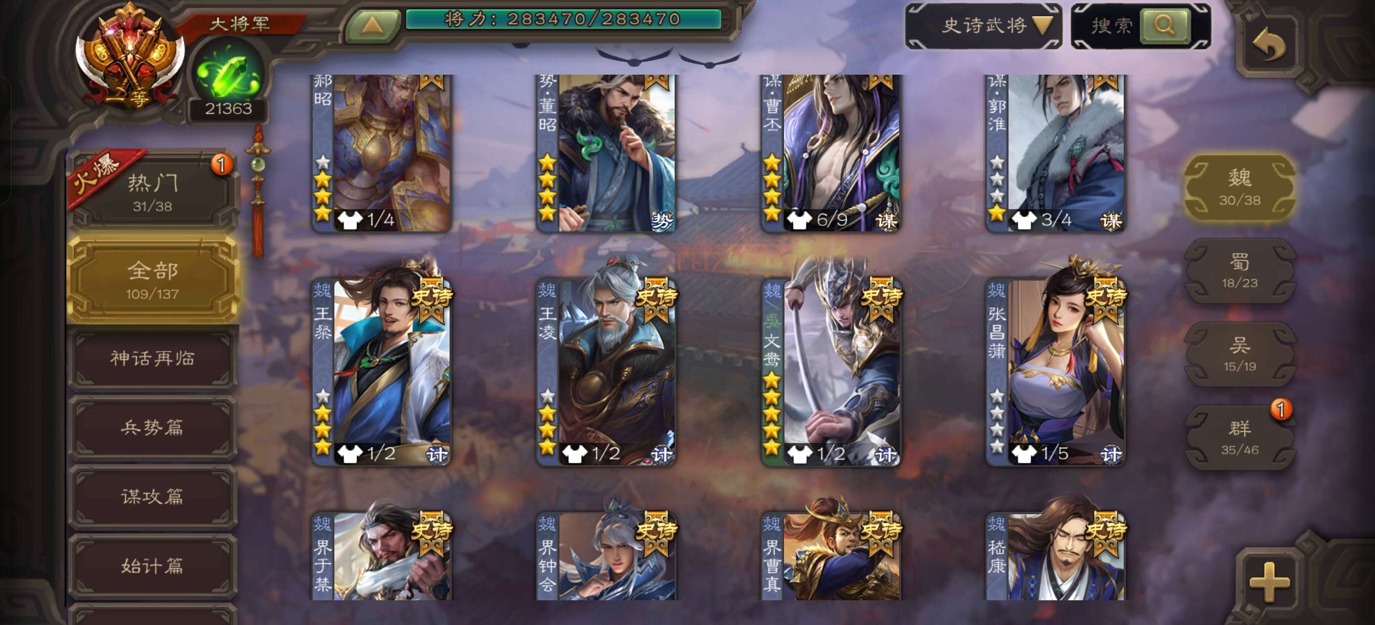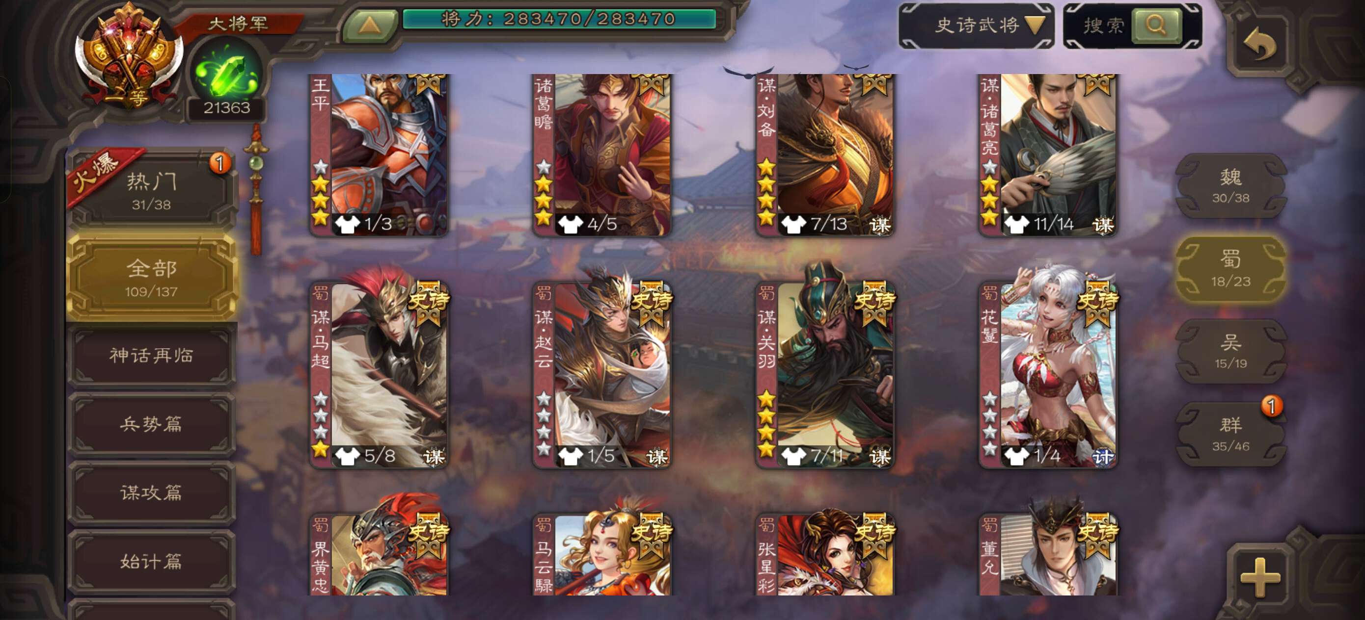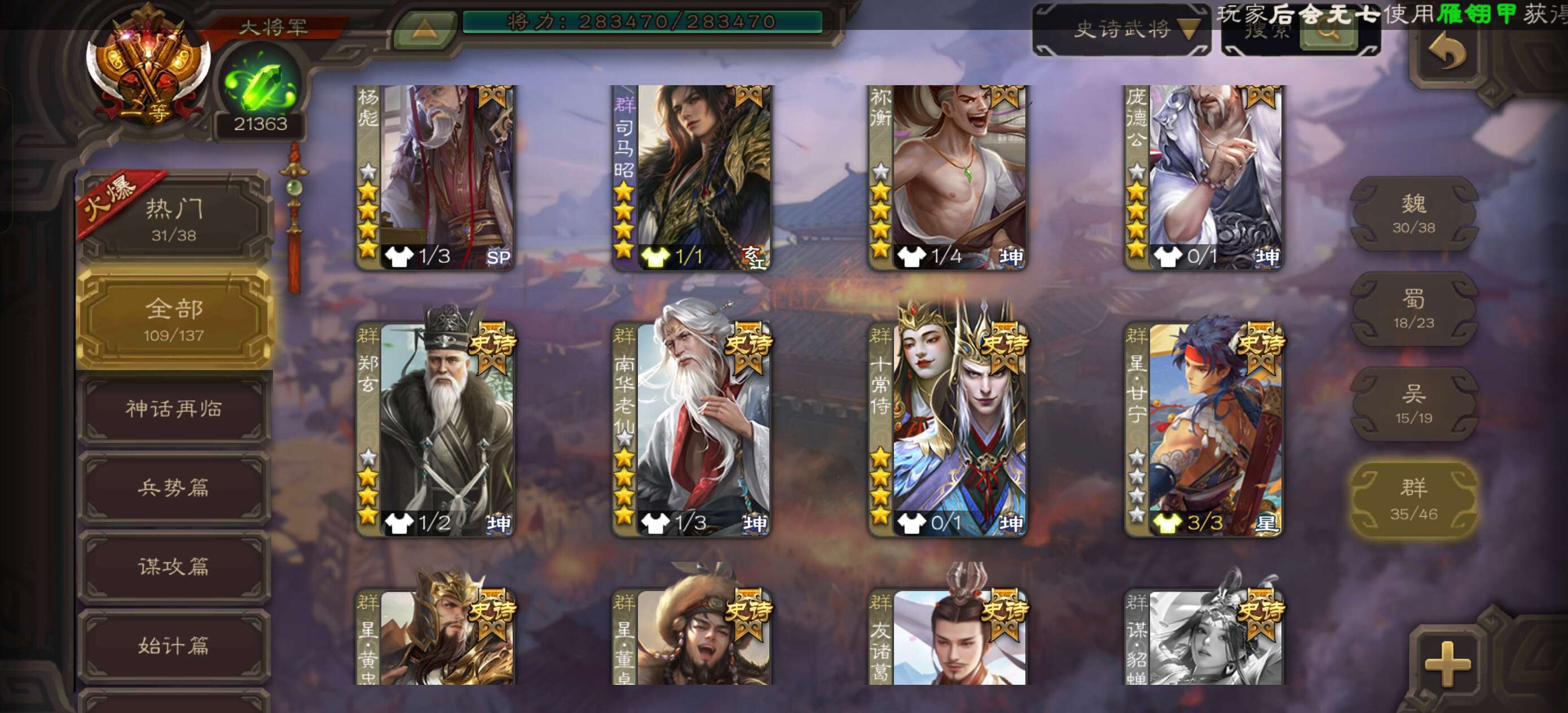 【移动互通版】v18一等大将军109史诗137动皮🐺崔芙至臻谋孙策至臻神郭嘉回廊神荀彧回廊神甘宁刘焉势董昭谋曹丕曹髦谋诸葛谋关羽鲍三娘势太史慈谋黄盖张奋孙寒华