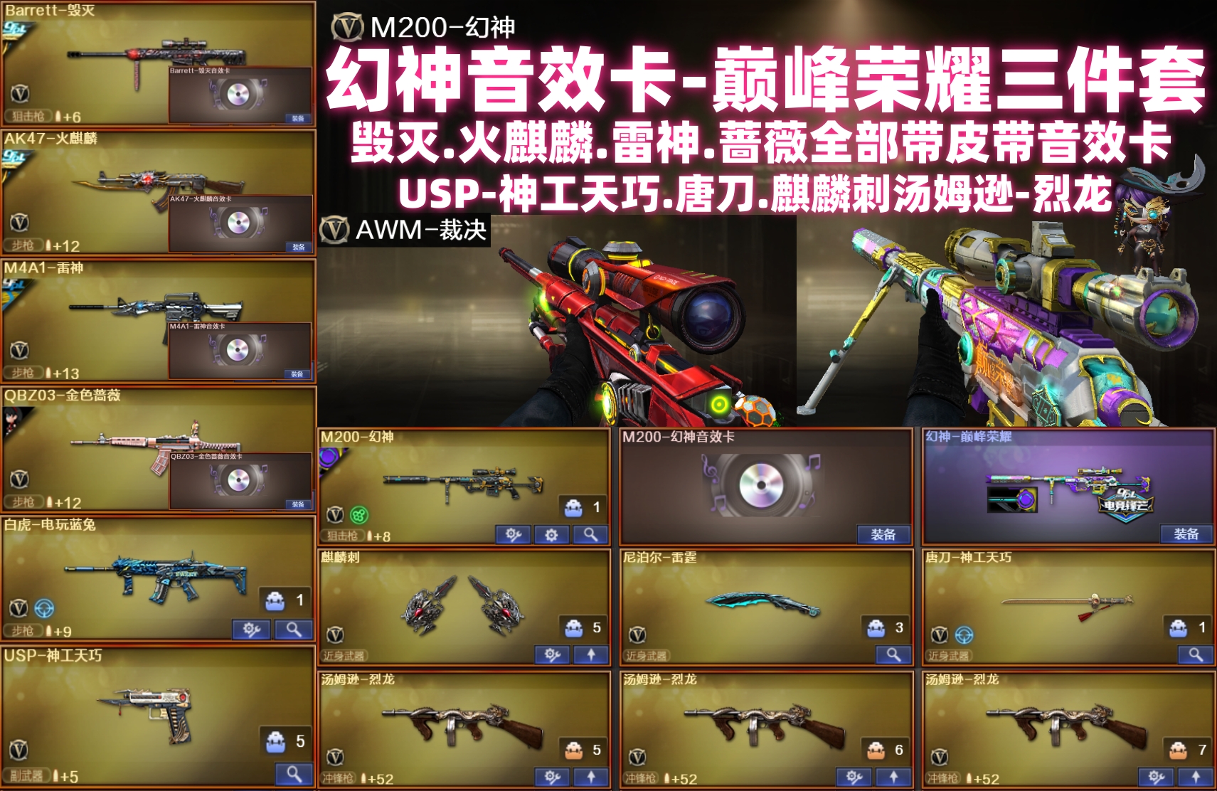 M200-幻神音效卡-巅峰荣耀三件套USP神工天巧⚡【全部带皮带卡:毁灭蔷薇雷神火麒麟】✅生化3烈龙