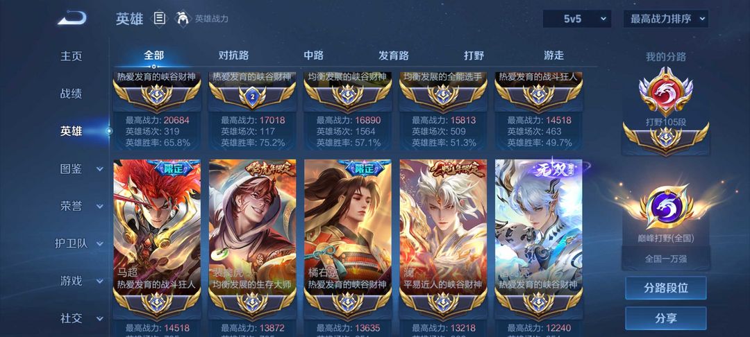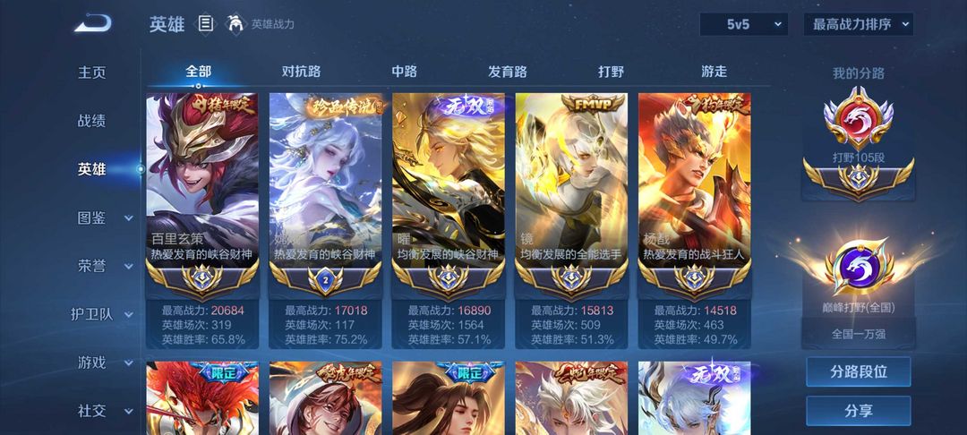 抢先四月在榜大国服打野补新皮105段国服打野❤️13大国2w玄策国服第三打野称号10无双皮肤质量