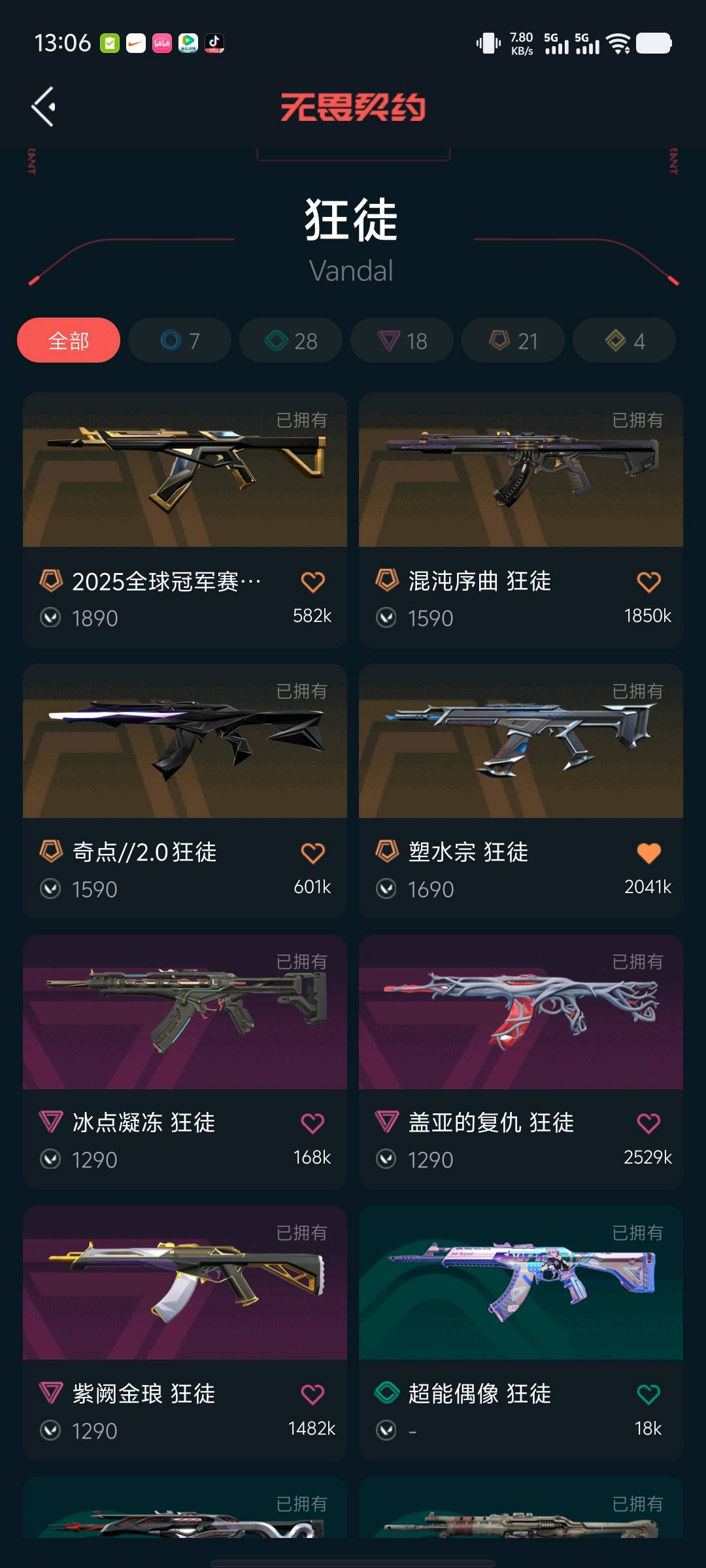 允许 英雄28 武器皮肤数量127;黑波之刃,盖亚的复仇 狂徒,掠影 戍卫,异鳞魔蛇 幻影,侦察力量 幻影,紫阙金琅 狂徒,混沌序曲 狂徒,