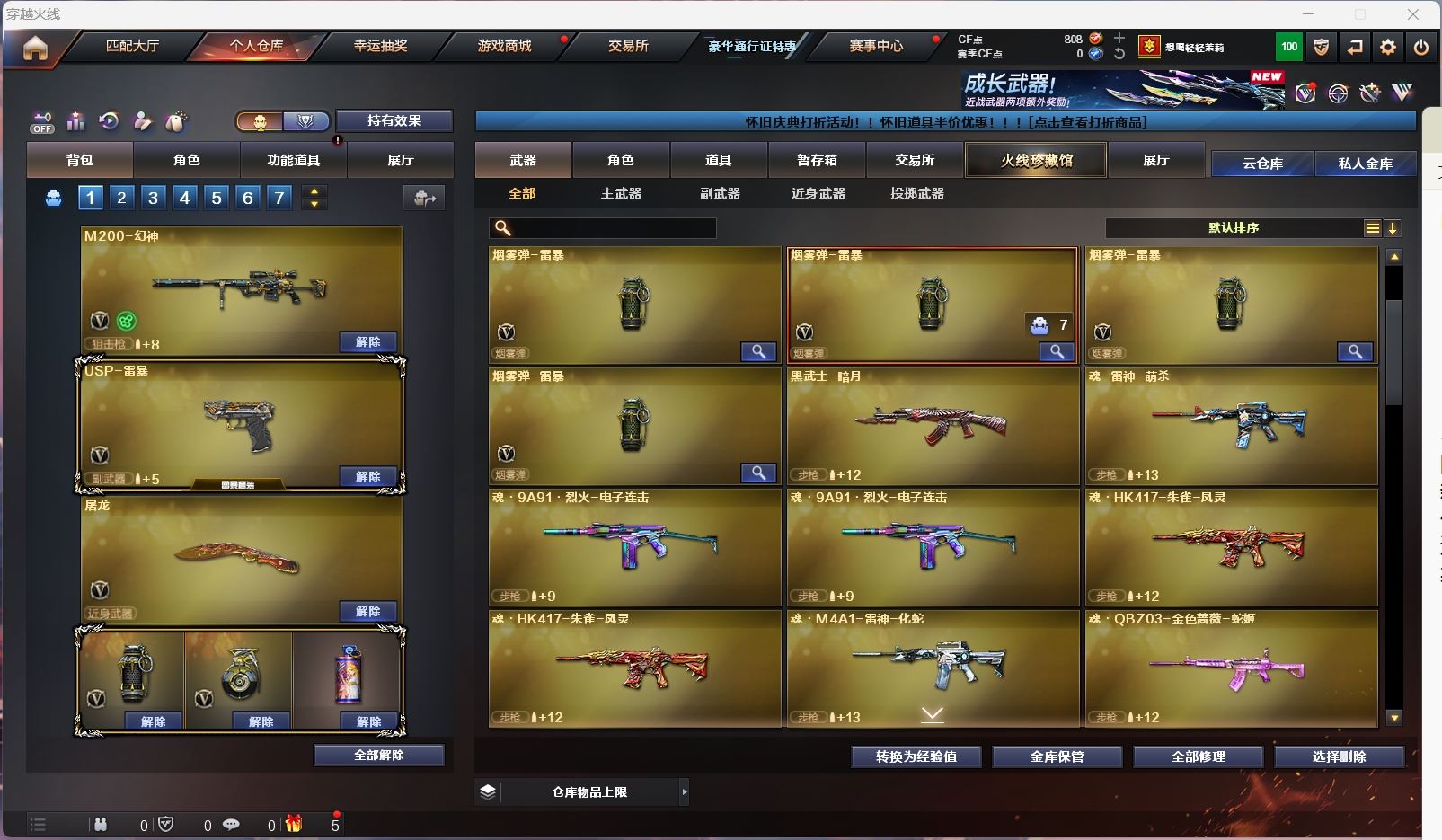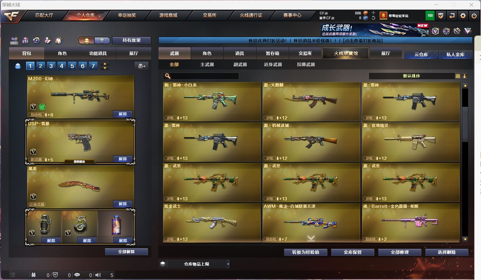 【m200幻神+usp雷暴】【qbz金色蔷薇】【裁决】【雷暴套 】【武器:火麒麟 雷神 黑骑士 雷暴 天龙 毁灭 极光 炼狱 】【6手枪:修罗*4 天神 雷暴 】【12刀具:屠龙*3 龙啸 擎天*4 麒麟刺*3 斩神刀雷暴 】【雷套:雷暴雷*7】【角色:春 葵 】;USP-雷暴,QBZ03-金色蔷薇,M200-幻神,
