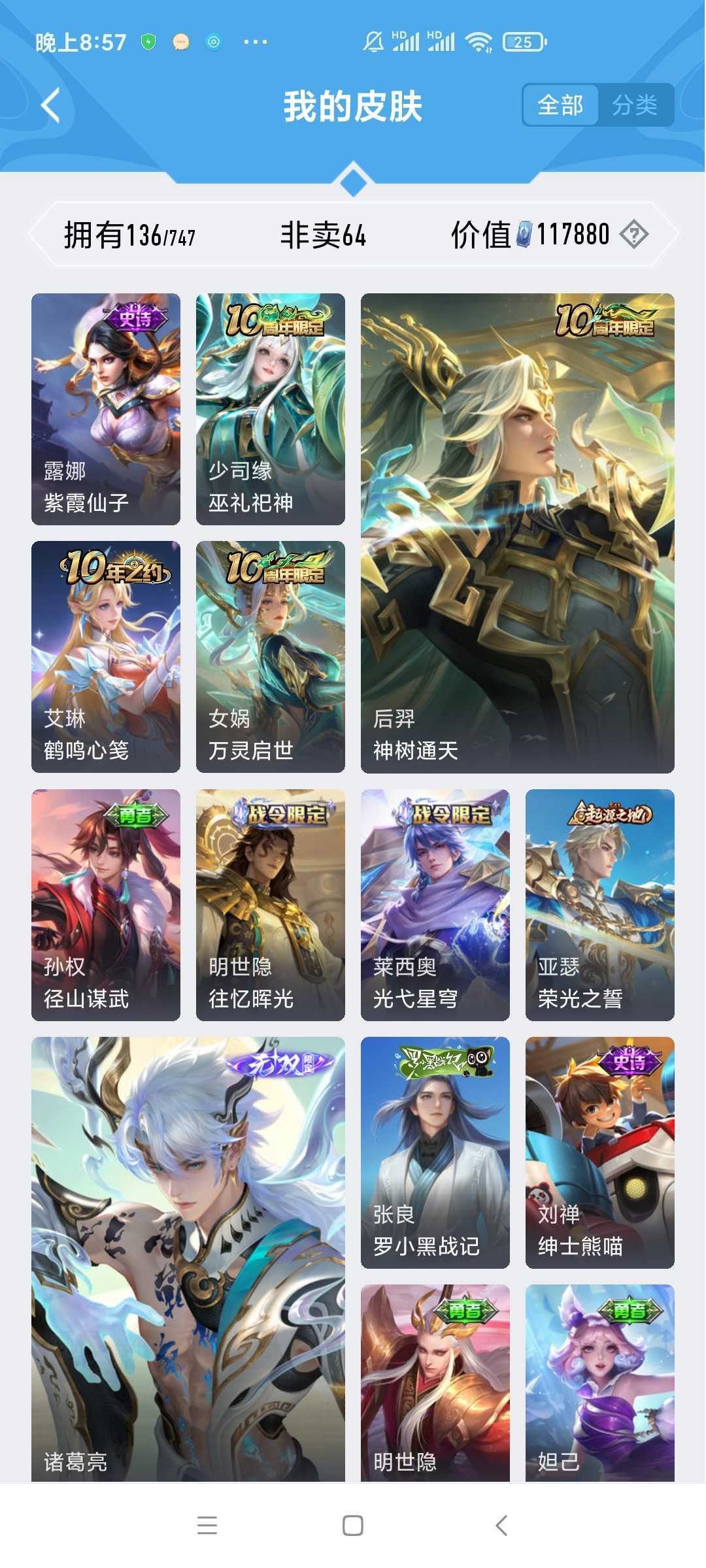 妹子号✨贵族10✨383皮肤✨110英雄✨8个荣耀典藏✨稀有皮肤超级多✨值得入手下单玩✨请把游戏截屏看完✨挂机逃跑⚡一律永久拉黑!