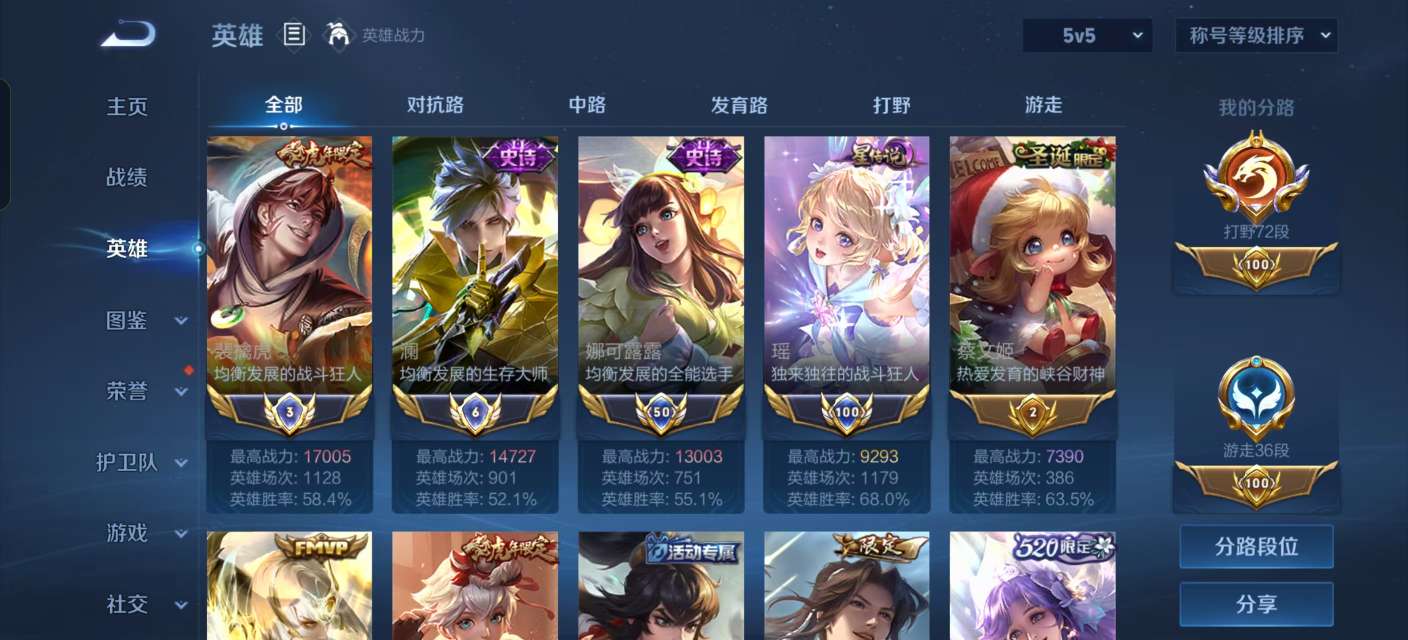 禁言禁好友选v10可共享⭐️巅峰开⭐️正式服72段打野⭐️历史小国裴擒虎澜娜可露露瑶