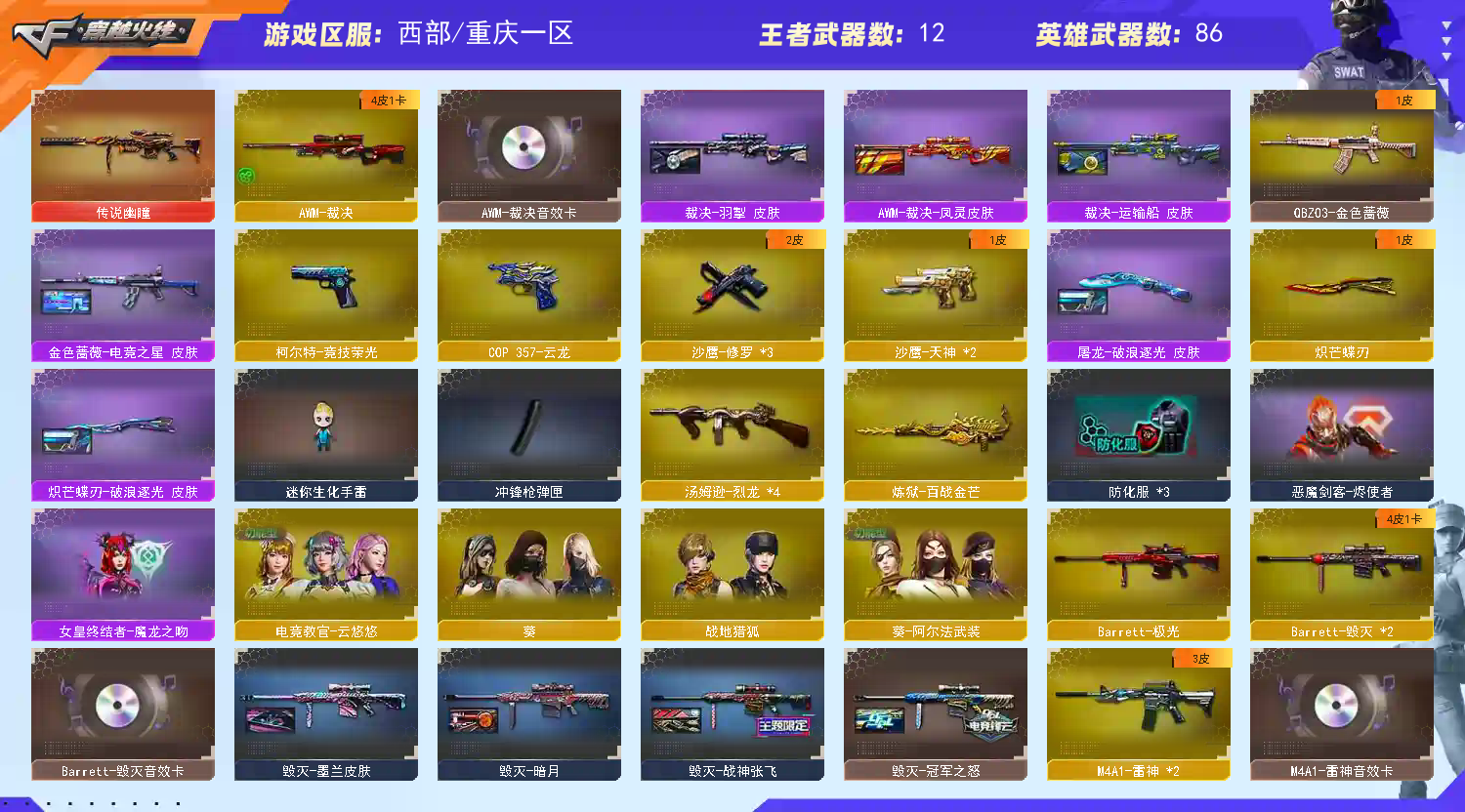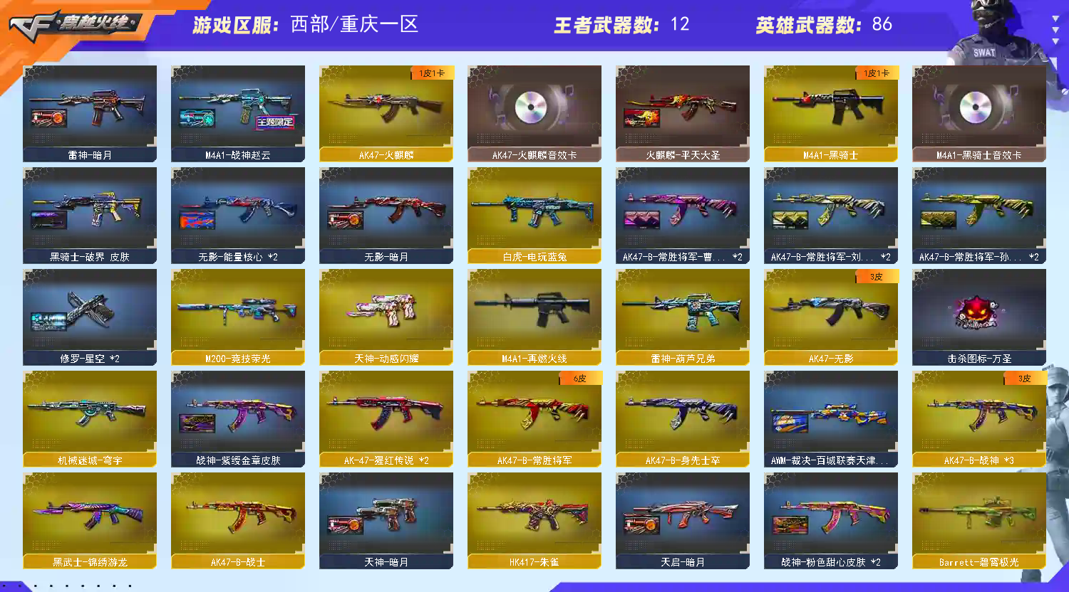 • 游戏区服:穿越火线 / 西部 / 重庆一区