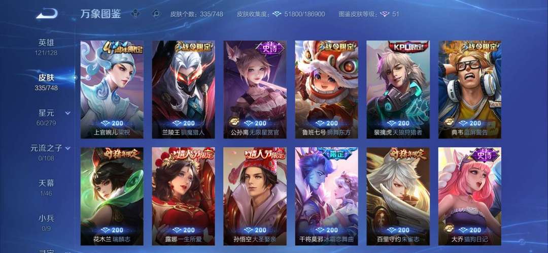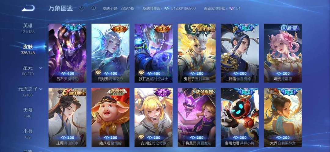 【非云直上】V10★皮肤榜一★539皮满典藏★鲁班时之奇旅会员★虞姬黛羽霜翎星元★吕布白金战神★全能大师★多金标★个性按键