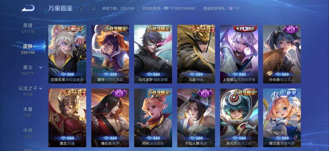 v10、12水539皮、死亡执政官、刘备星传说时之思念、小兵皮肤大耳狗甜茶、瑶无双真我赫兹、愿照·九州拓、怪盗基德、画中仙、至尊宝、凤求凰、神威、天魔缭乱