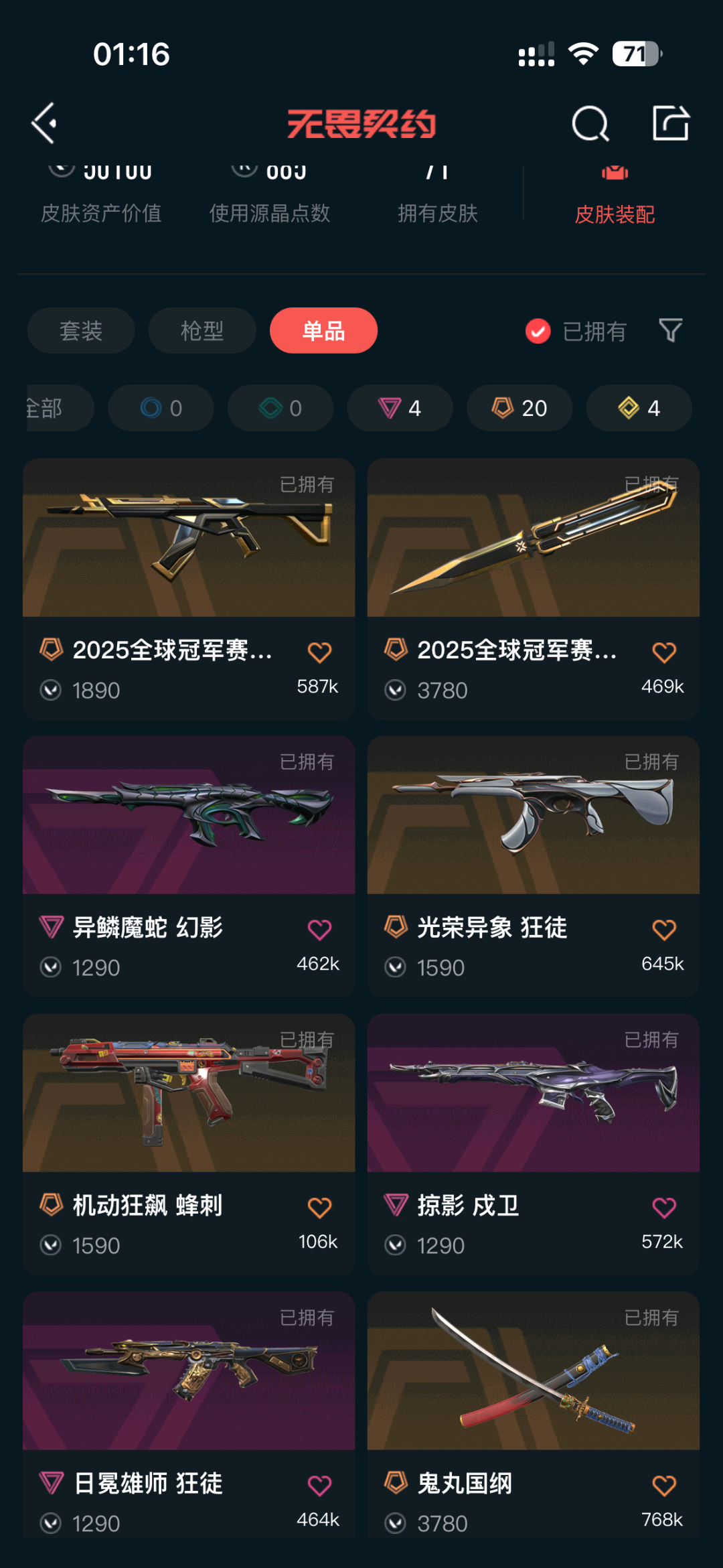 别开挂谢谢;艾沃莉的梦之翼 奥丁,掠影 戍卫,异鳞魔蛇 幻影,光荣异象 狂徒,2024全球冠军赛 幻影,机动狂飙 蜂刺,黯夜怪谈 飞将,