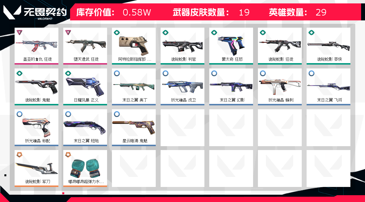 • 武器皮肤数量: 19