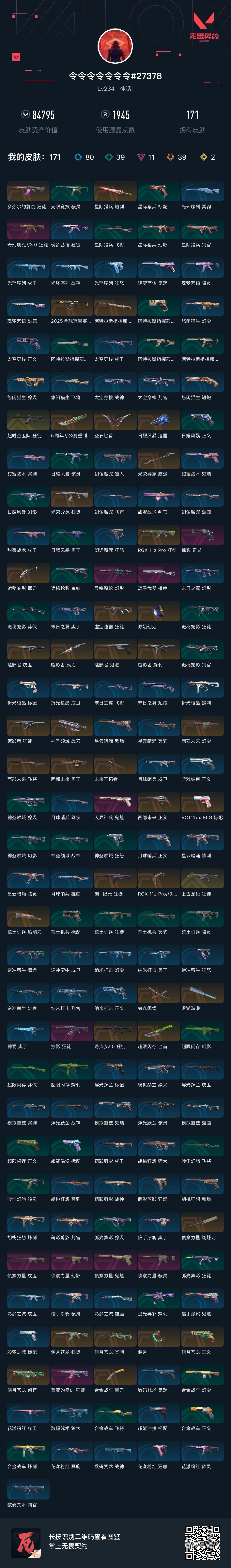 首页 > 租号大厅 > 无畏契约-wegame > wegame/wegame > 【神话1】允许排位 注意登陆环境 账号号主本人,不是商户 英雄28 武器皮肤数量171