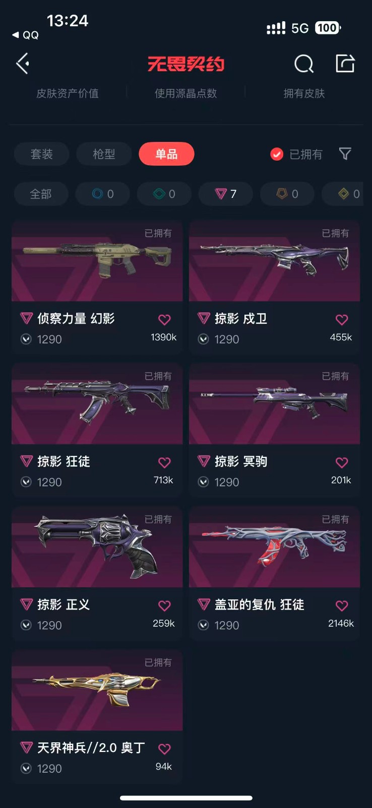 电音光谱幻影,侦查幻影,流脓ak,盖亚ak,西部未来争议,超时空鬼魅,掠影套 ,混沌ak,混沌大狙,掠影大狙,显卡刀,781协议幻影,天界神兵奥丁,奇点战神,紫金爪刀,22冠军套。;奇点 战神,紫金爪刀,盖亚的复仇 狂徒,掠影 戍卫,洪荒怒焰 狂徒,掠影 狂徒,侦察力量 幻影,