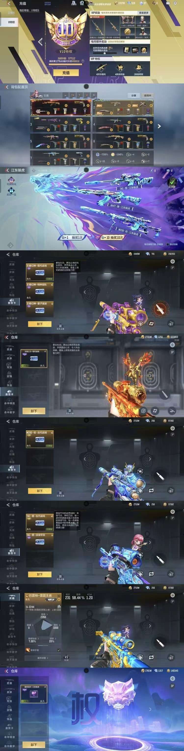 ✨最新王者幻神紫电熔岩,火皮两款皮 满配紫电王幻 ✨全新江东骇虎活动全套更新 ✨孙权江东骇虎套装(特效拉满)太史慈江东骇虎套装(特效全拉满)最终消灭枪线消灭图标触摸按键音效卡C4命中数字命中特效等全套更新 ✨王者之力火皮,冰霜奇迹两款皮肤 满配火皮王力 ✨王者之势火皮,女团皮两款皮肤 满配火皮王势 ✨最新王者之盘已更新 ✨最新M12S-天公已更新 ✨最新生化角色钟小魁已更新 ✨最新生化武器幻灵套装全套更新 ✨最新赏金令AN94盖已更新 ✨最新文远过载套装全套更新 ✨冰霜王者之狱已更新 ✨最新赏金令仲康套装已更新 ✨最新赏金令孟获套装全套更新 ✨最新M4神工天巧套装全套更新 ✨最新生化武器巴雷特雷霆王者已更新 ✨最新王者之蝶已更新 ✨账号充值金额较大,文明游戏,感谢配合
