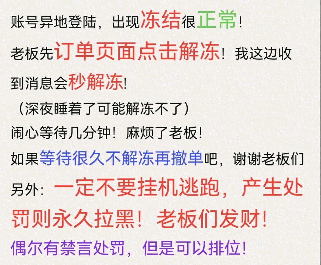可排位隐藏分低炸鱼带妹首选 订单高峰期异地连续登录,有时出现wegame登录保护,涉及毁坏虚拟财产罪及计算机安全罪,请文明游戏素质游戏,让我们共建美好租号平台.大哥们不要退排位,谢谢大家!本账号已经在公安局做了虚以财产登记。若是因为外挂行为导致账号被封。平台实ming制的。还有游戏ip登录记录,不管你在哪都能抓住你,最后造成的财产损失,不是你承担就是你家人承担。切勿以身犯法。文明游戏;
