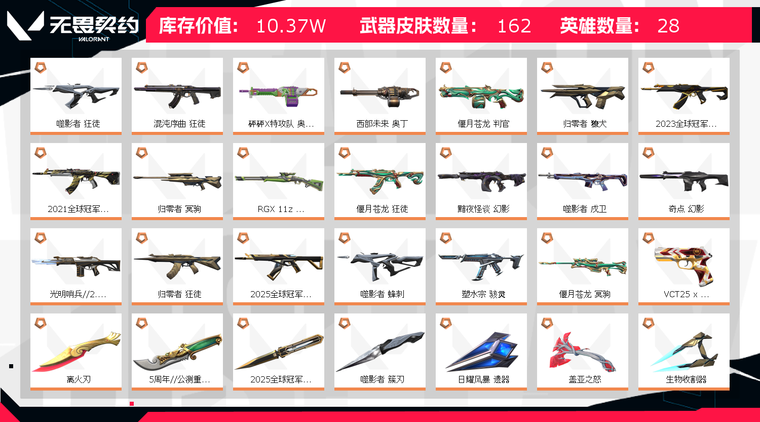 首页 > 租号大厅 > 无畏契约-wegame > wegame/wegame > 10.3w库存25冠军22冠军21冠军23冠军混沌序曲狂徒噬影者归零者套侦察力量套偃月苍龙套离火刃