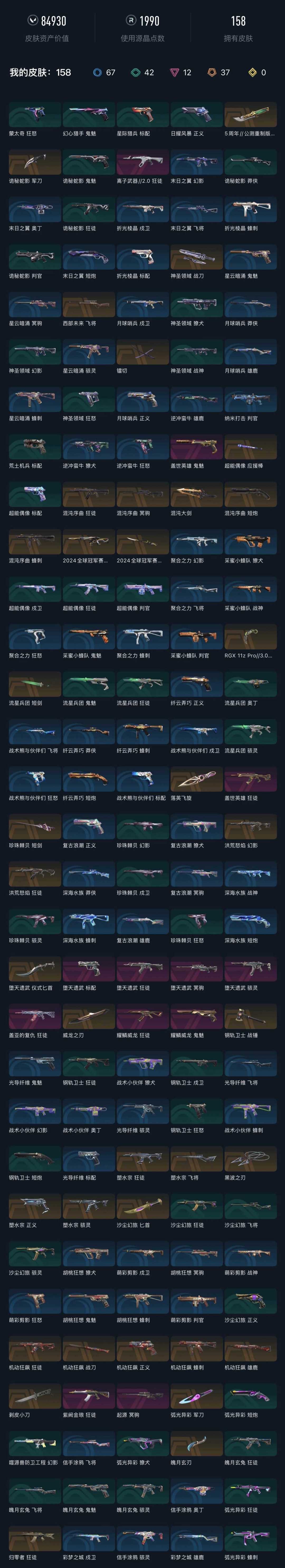 • 武器皮肤数量: 158