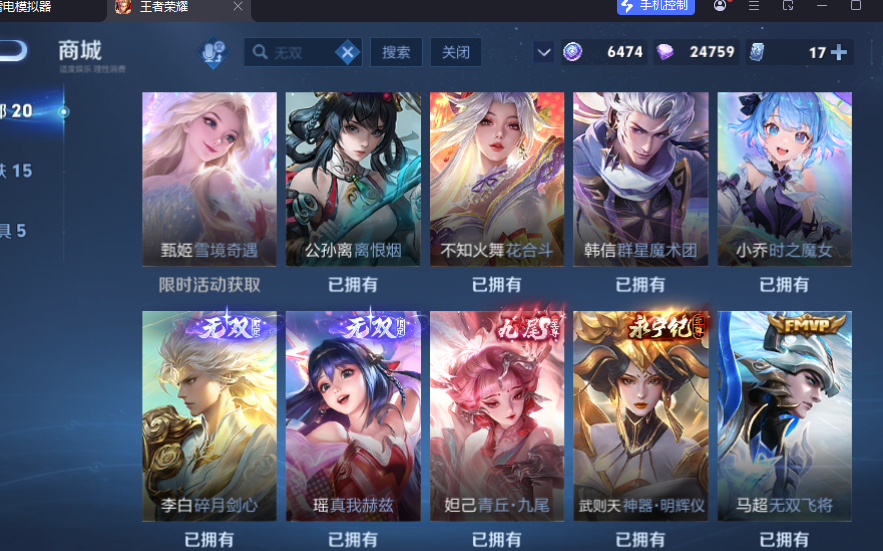 v10、12水539皮、死亡执政官、刘备星传说时之思念、小兵皮肤大耳狗甜茶、瑶无双真我赫兹、愿照·九州拓、怪盗基德、画中仙、至尊宝、凤求凰、神威、天魔缭乱