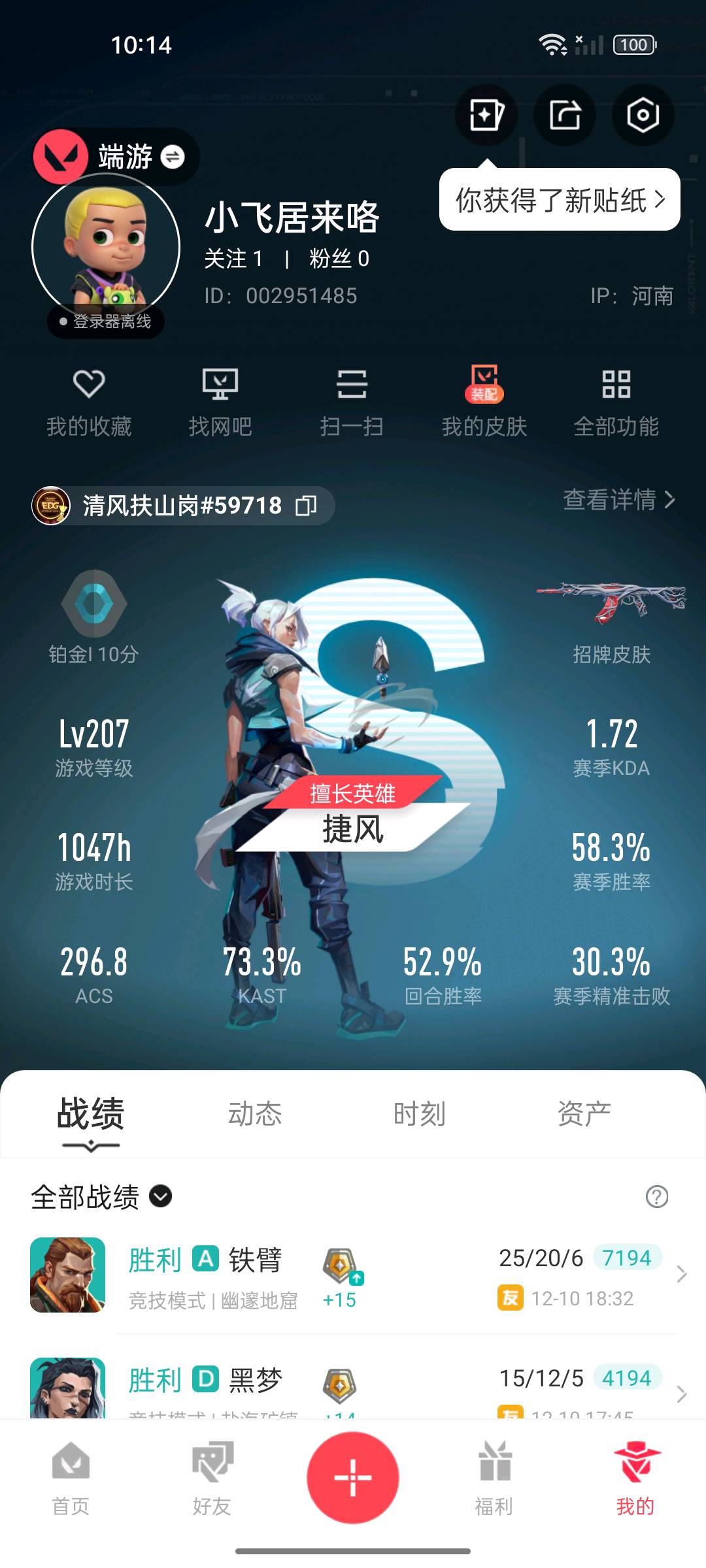 • 游戏区服:无畏契约-wegame / wegame / wegame