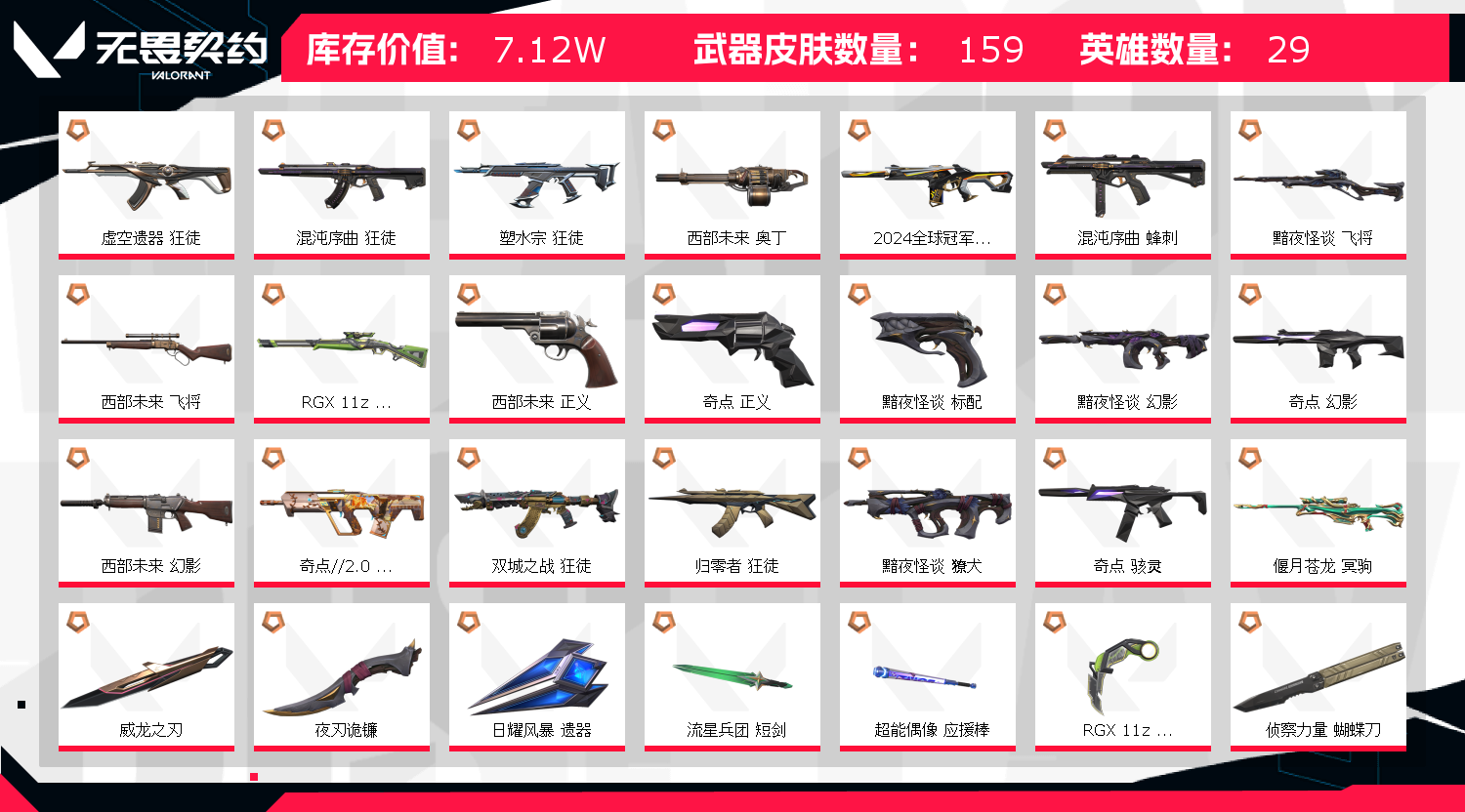 • 武器皮肤数量: 159