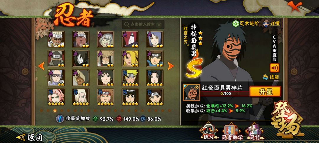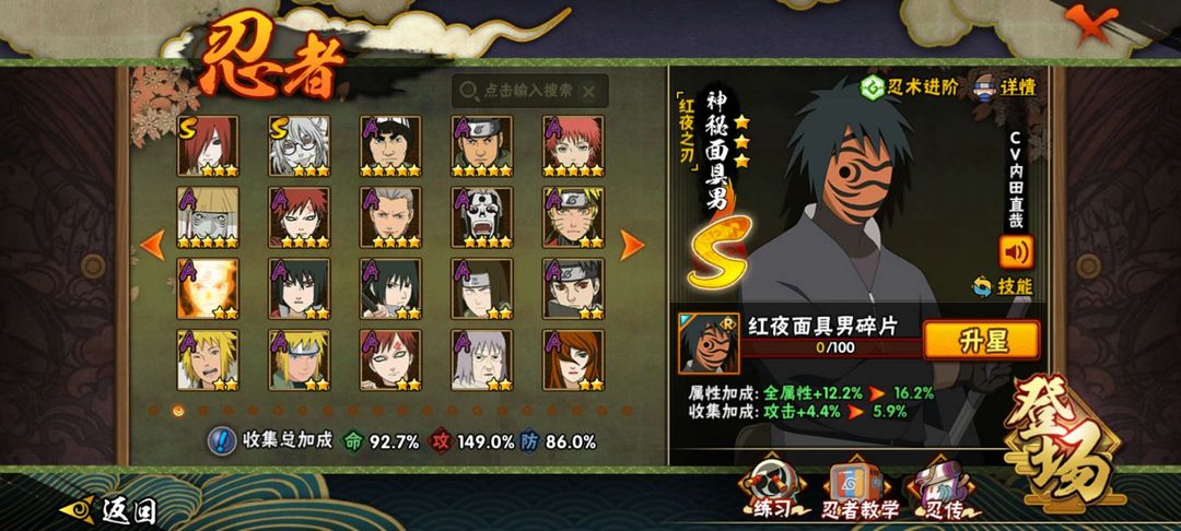 红夜带土 新春水门 破面带土 骨架 须佐佐助 仙人自来也 高胜率v10