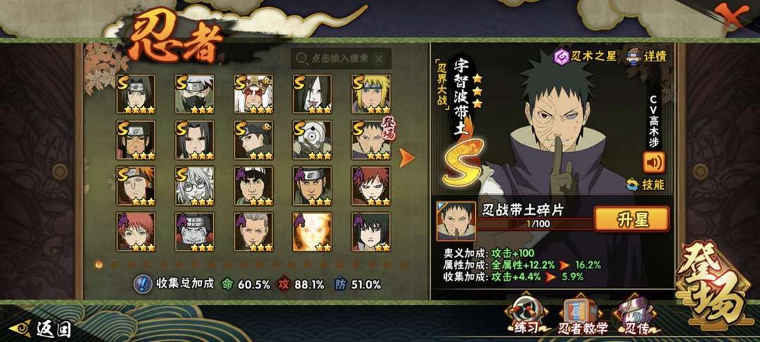 VIPV9级;S忍13个;A忍14个;通灵兽10个;看图