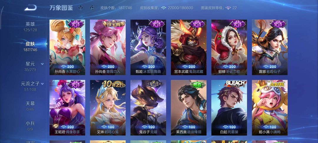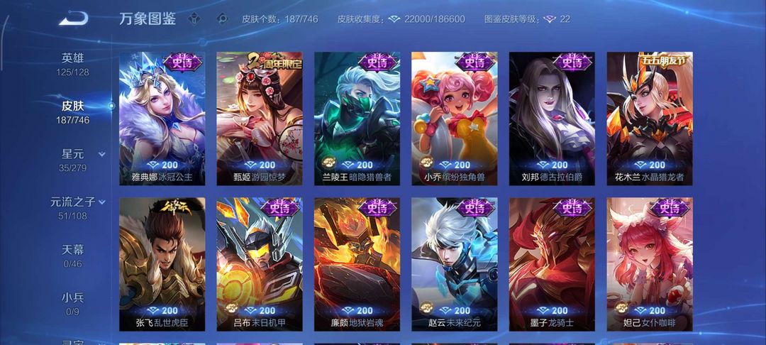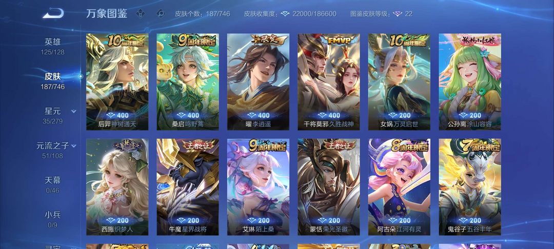 【非云直上】537满皮满典藏12星元◎鲁班新皮◎虞姬星元◎天使星元◎白金战神◎妲己绝版星元