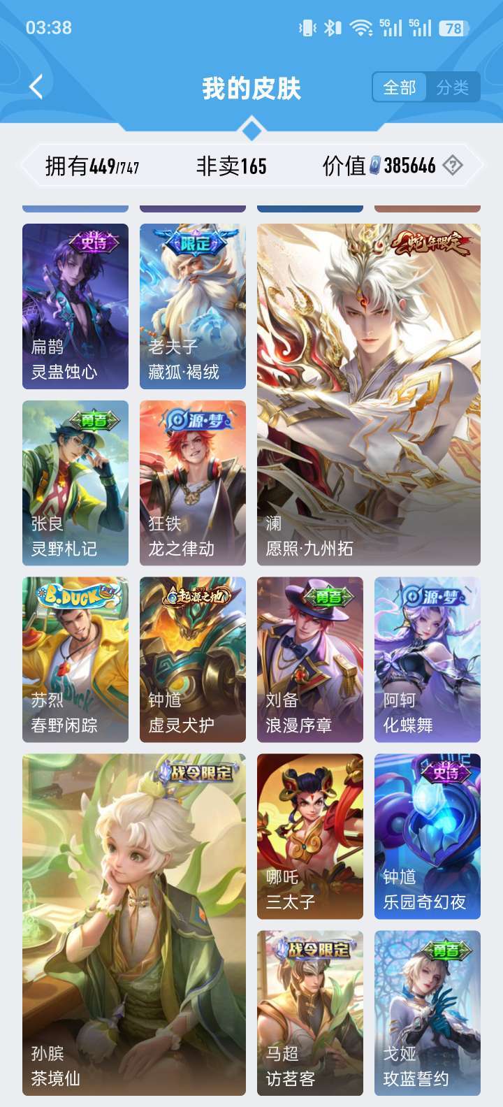 无双贵族V10♥746皮肤♥诸葛亮天机白泽♥死神系列黑崎一护,朽木白哉♥貂蝉繁花慕夏,全屏天幕♥千劫归真♥请先看最后一张图找客服♥不卡非☁♥166横行霸道