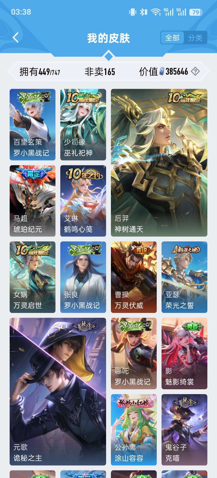 v10、509皮、刘备星传说时之思念、韩信荣耀典藏、瑶珍品传说大耳狗之梦、青丘·九尾、星域神启、画中仙、深海之息、天魔缭乱