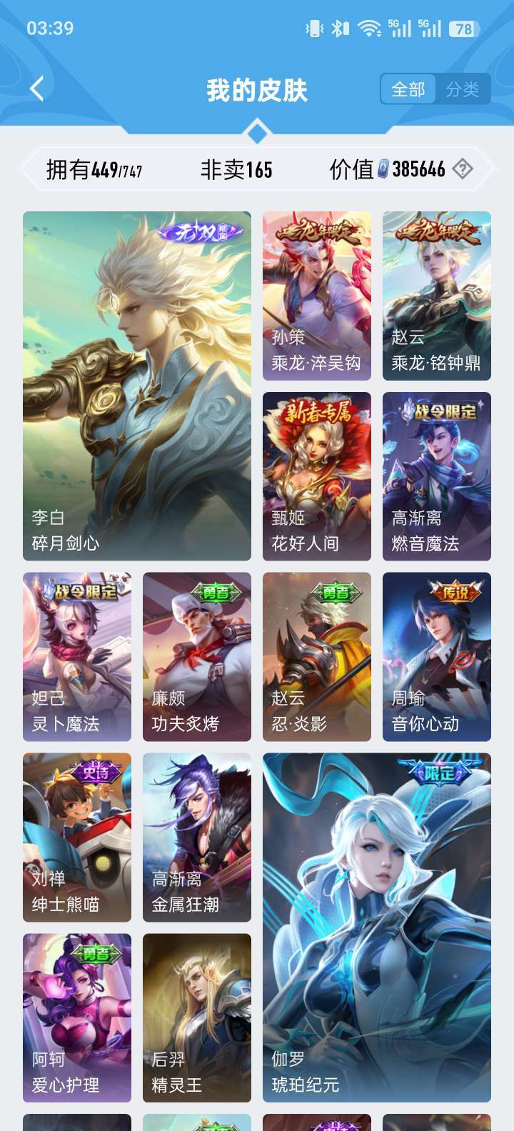 无双贵族V10♥746皮♥诸葛亮天机白泽♥死神系列黑崎一护,朽木白哉♥貂蝉繁花慕夏,全屏天幕♥千劫归真♥请先看最后一张图找客服♥不卡非☁♥166横行霸道