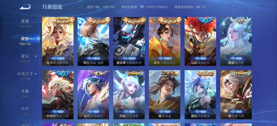15星可排⭐高品质皮肤⭐李逍遥⭐霜月吟⭐九霄神辉⭐虎魄纪元⭐无限飓风号⭐神威⭐巅峰150⭐满铭文