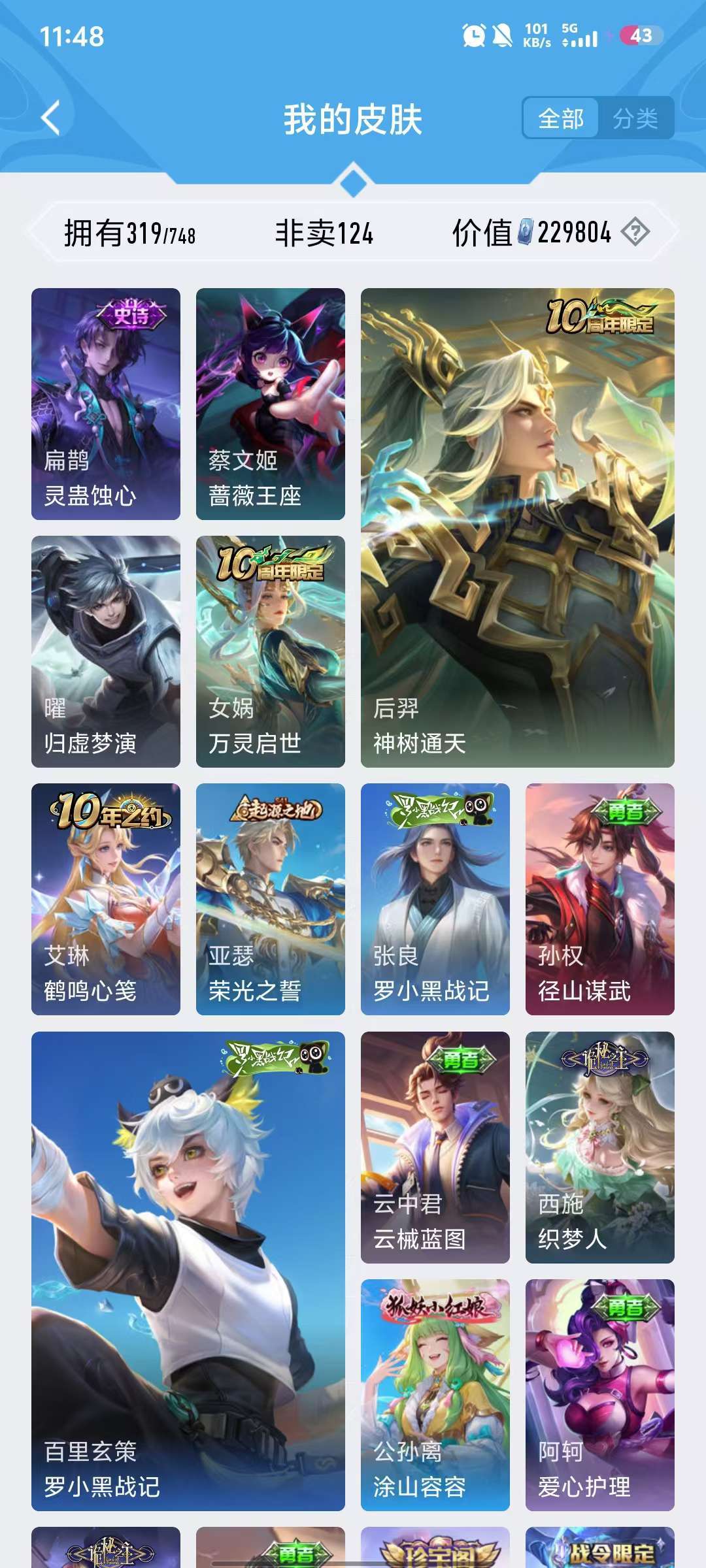 扫码登录!非云不卡!极品贵10🌸多限定410皮🌸8典藏40传说新皮多-可加好友!银白咏叹调-九霄神辉-浮生妄-齐天大圣-怒海鳞威-山海炽霜斩-永宁纪星穹之声