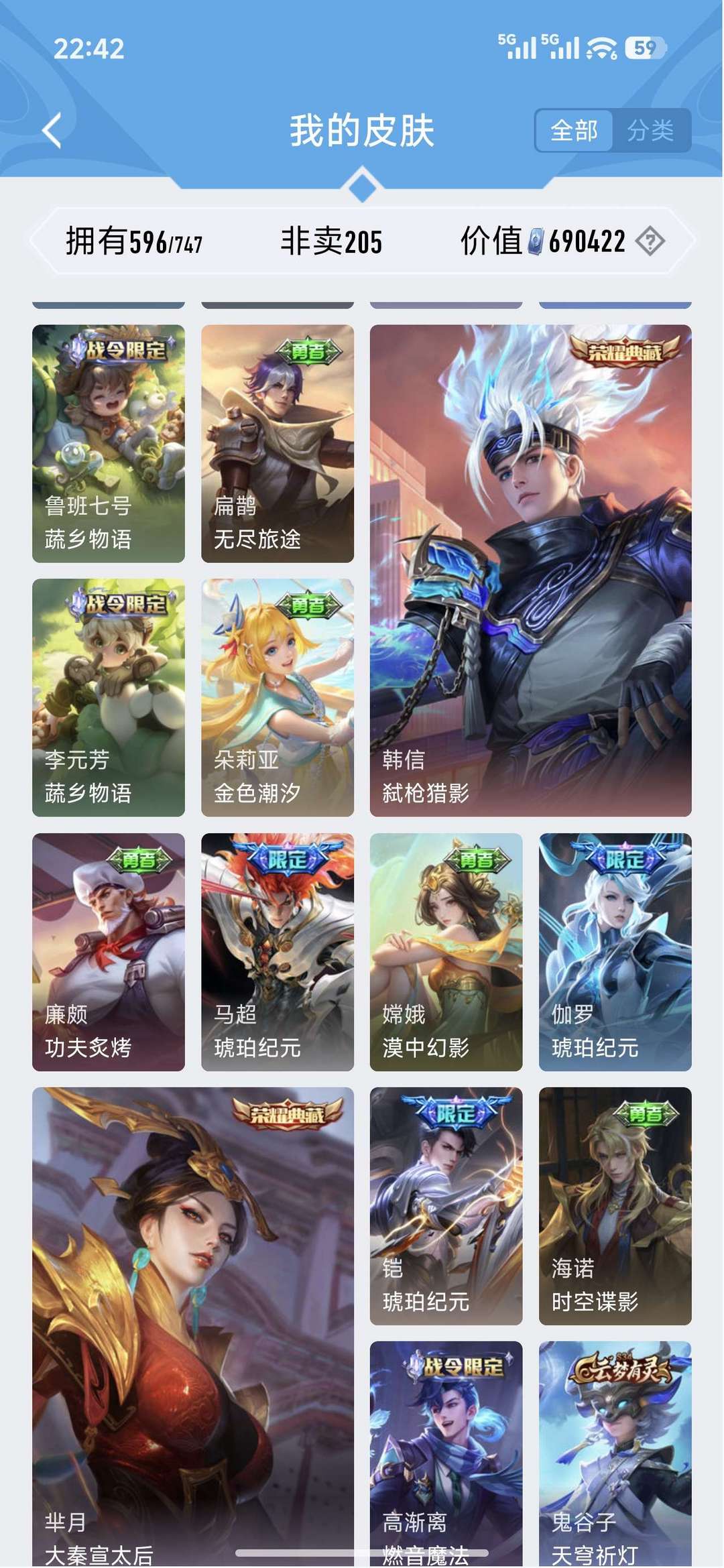 上不去看最后一张图游戏名字长租扫码上号无双贵族10,极品674皮,新皮肤基本全有,满珍品,7无双,10典藏,神威,炽阳神光,还有许多极品皮肤看图皮肤