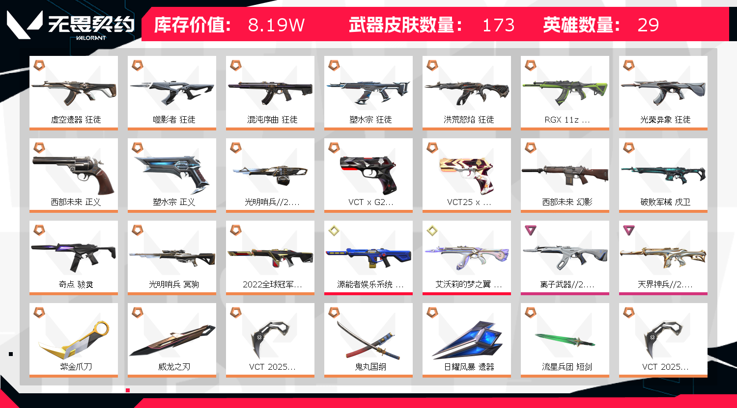 首页 > 租号大厅 > 无畏契约-wegame > wegame/wegame > 禁止开挂!!!❤️22冠军套VCT⛰紫金鬼丸威龙天御奇点⛰光荣塑水显卡艾沃莉22把狂徒多幻影