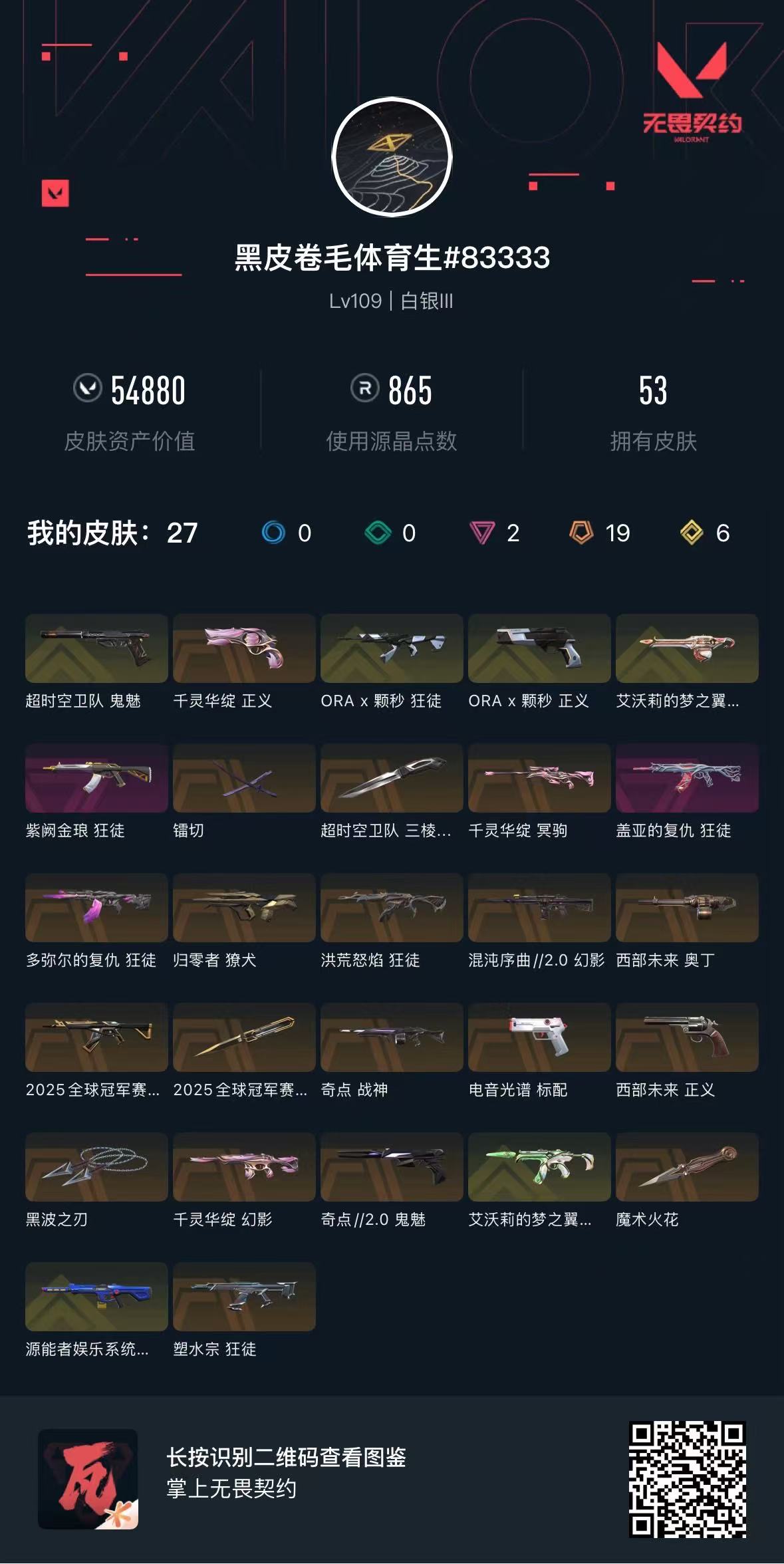• 游戏区服:无畏契约-wegame / wegame / wegame