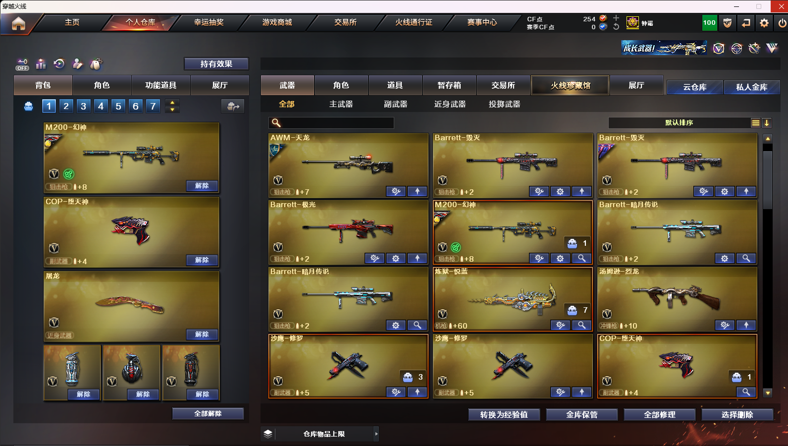 可排位幻神➕AG皮肤➕白虎朱雀蔷薇横秒之巅➕四防角色;QBZ03-金色蔷薇,M200-幻神,