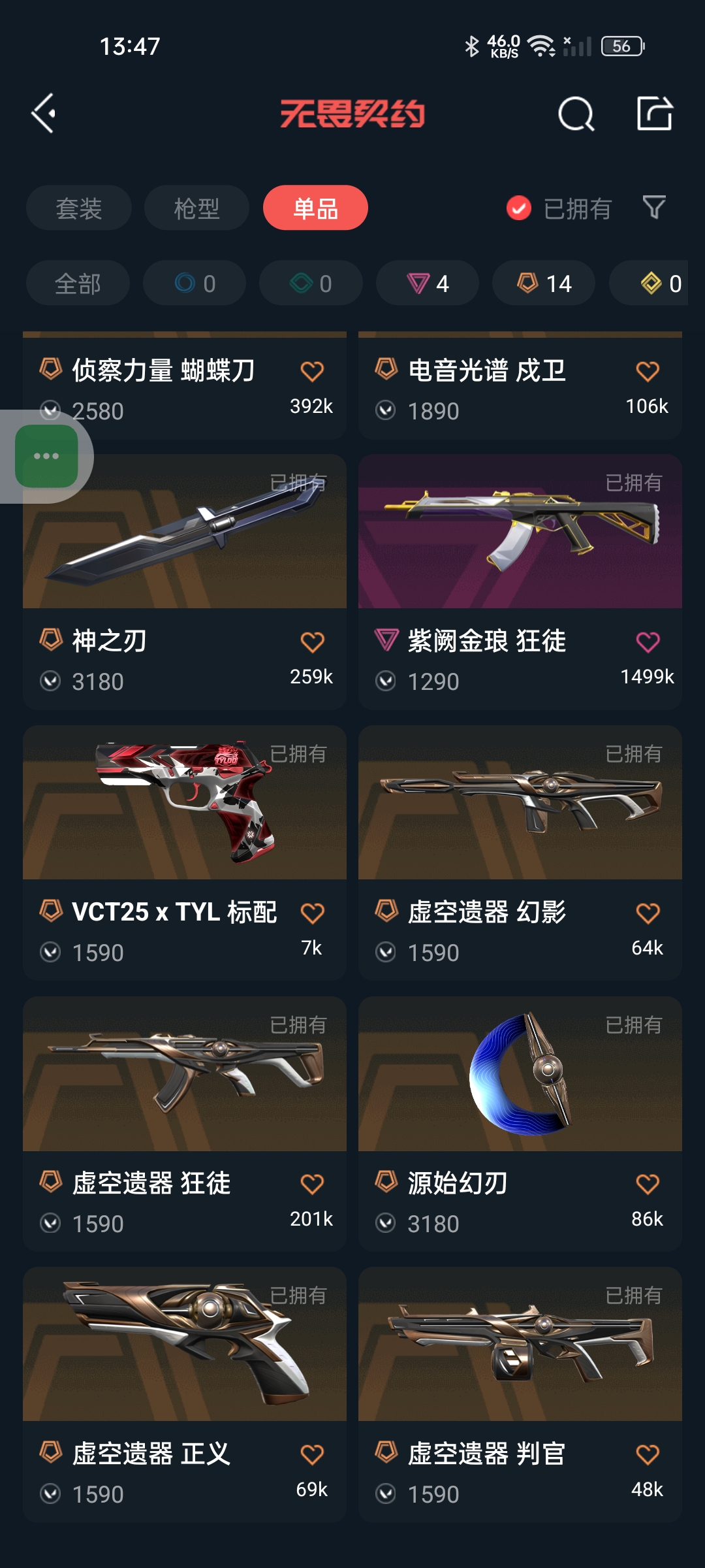 首页 > 租号大厅 > 无畏契约-wegame > wegame/wegame > 3.33w库存✨虚空遗器狂徒✨虚空遗器幻影✨虚空遗器套装✨电音光谱套装✨蝴蝶刀