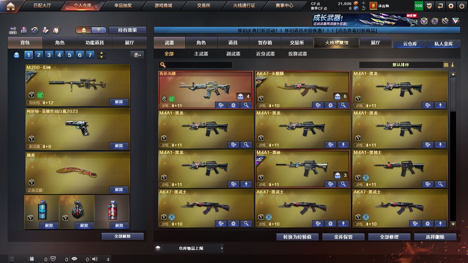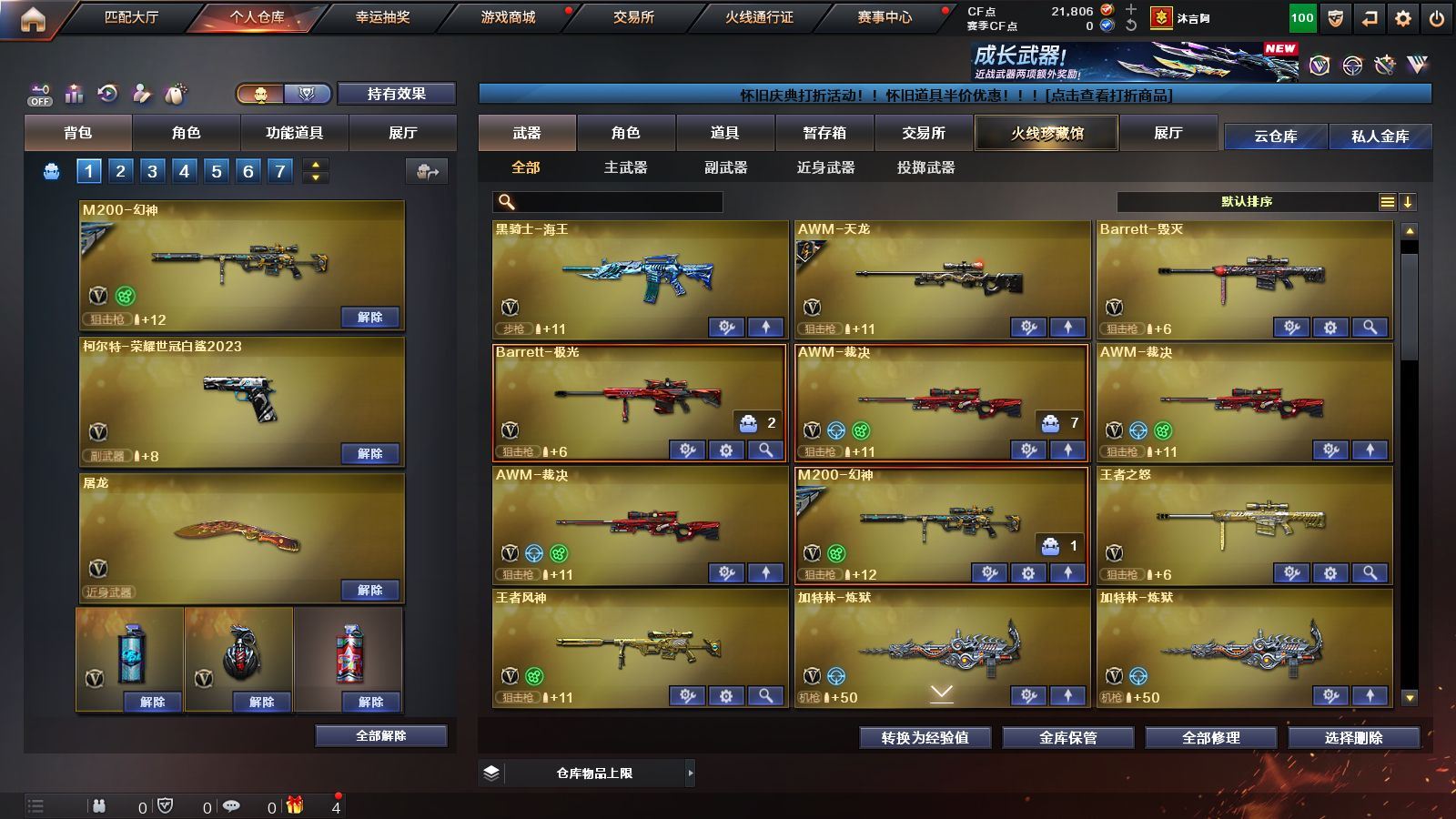 《传说光耀》《幻神+电流骇客》《王者风神》《毁灭 极光 裁决》《qbz金色蔷薇 烈火 火麒麟 黑龙 雷神 黑骑士 黑武士》《柯尔特荣耀世冠白鲨2023》《零 隐 樱 隼 魅影 四防魅影》《极光音效卡 雷神音效卡 毁灭音效卡》《雷神白鲨14冠军 火麒麟AG战队》;柯尔特-荣耀世冠白鲨2023,隼,QBZ03-金色蔷薇,M200-幻神,