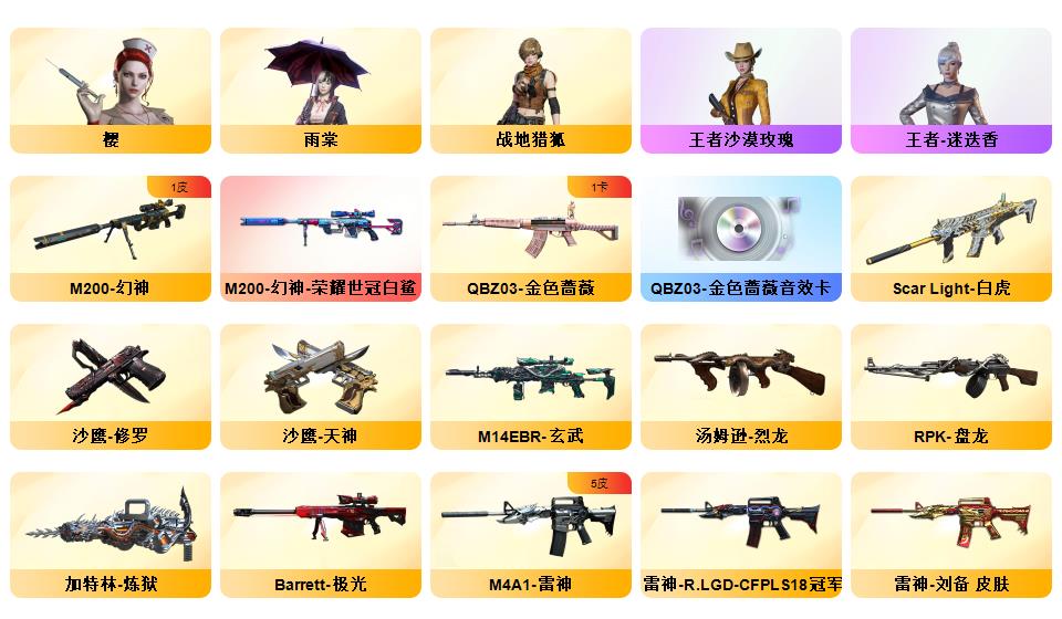 【传说暗裔传说破晓】【幻神荣耀世冠白鲨】【6盘/6烈】北部/河南一区/86v/幻神/王者星霆/觉醒版/王者白虎/觉醒版/【金色蔷薇套装/QBZ金色蔷薇/QBZ冠军之薇/QBZAGCFPLS19冠军/QBZ金色蔷薇音效卡/】/白虎/*2/白虎白鲨CFPLS23冠军/朱雀/青龙/玄武/白虎电玩蓝兔/【四防角色/雨棠/王者迷迭香/王者沙漠玫瑰/王者炫/】/【角色】/樱/战地猎狐/奇洋探员/乔伊教练/蛇隐宗/【音效卡/毁灭音效卡/黑骑士音效卡/】/【枪皮】