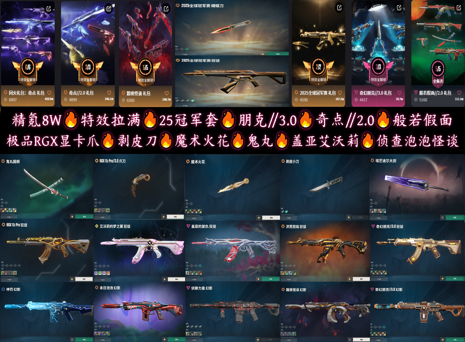 特效拉满🔥25冠军套朋克3奇点2般若套🔥RGX显卡爪魔术火花剥皮刀🔥盖亚艾沃莉流脓🔥侦查泡泡