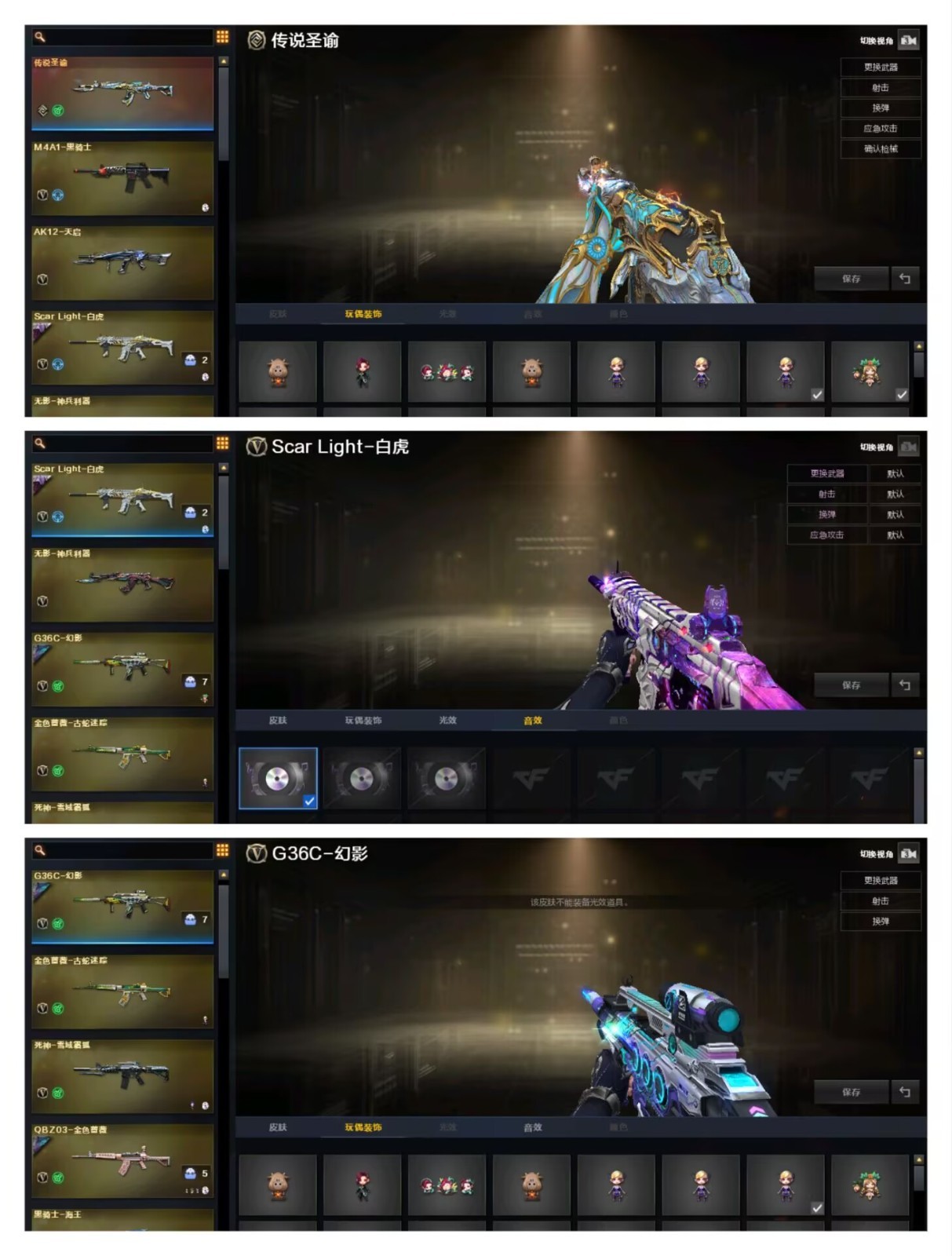 幻神光海夜岚/传说圣谕星神三件套/裁决三件套/白虎三件套/金色蔷薇三件套/竞技荣光套/G36C幻影