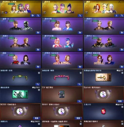 【王者武器】:【炫金黑龙-1,炫金雷神-1,王者之翼-1,王者之武-1,王者之心-1,王者玉锋-1,高爆手雷-雷霆王者-2,QBZ-03-王者蔷薇-觉醒版-1,炼狱-悦蓝-觉醒版-1,王者之势-觉醒版-1,王者之啸-觉醒版-3,王者之心-觉醒版-1,王者之锋-觉醒版-1,闪光弹-雷霆王者-觉醒版-1,炫金千变-1】 【英雄武器】:【AN94-超新星-2,M4A1-千变-1,M4A1-黑骑士-3,M4A1-玫瑰精灵-1,屠龙-3,龙啸-1,AK47-无影-1,麒麟刺-1,AK47-火麒麟-1,AWM-天龙-1,Barrett-毁灭-2,汤姆逊-烈龙-2,RPK-盘龙-1,沙鹰-修罗-4,加特林-炼狱-1,沙鹰-天神-2,M4A1-雷神-2,M4A1-黑龙-2,M200-幻神-1,USP-雷暴-1,黑武士-CF网剧冠军-1,M200-竞技荣光-1,天神-CF网剧冠军-1,幻灵之锋-2,擎天-CF网剧冠军-1,擎天-竞技荣光-1,机械迷城-穹宇-1,柯尔特-竞技荣光-1,烟雾弹-竞技荣光-1,闪光弹-竞技荣光-1,高爆手雷-竞技荣光-1,Scar Light-白虎-1,AK-47-猩红传说-1,Barrett-暗月传说-1,QBZ03-金色蔷薇-1,擎天-1,COP-堕天神-1,AWM-裁决-1,高爆手雷-堕天神-5,龙啸-堕天神-1,麒麟刺-堕天神-1,闪光弹-堕天神-5,烟雾弹-堕天神-5,AK47-B-常胜将军-1,AK47-B-身先士卒-1,烟雾弹-幻灵-1,荣耀世冠-柯尔特-1,荣耀世冠-火麒麟-3,荣耀世冠-雷神-1,荣耀世冠-龙啸-1,高爆手雷-幻灵-1,AK47-黑鲨-1,AK47-B-战士-1,Barrett-朱雀-1】 【装饰品】:【死神-秘银-1,天启-暗月-1,雷神-暗月-1,黑骑士-暗月-1,无影-暗月-1,天神-暗月-1,雷神-能量核心-1,天龙-能量核心-1,无影-能量核心-1,极光-能量核心-1,修罗-能量核心-1,灵狐潜伏者玩偶-1,巨人玩偶-1,刀锋玩偶-1,悦动玩偶-1,游泳喵-1,AWM-天龙-传奇白鲨-1,火麒麟-冠军之心-1,金色幸运鼠玩偶-1,雷神-荣耀世冠AG-1,雷神-R.LGD-CFPLS18冠军-1,毁灭-冠军之怒-1,雷神-宠儿-2019MVP-1,AK47-火麒麟-传奇EVEN-1,火麒麟-平天大圣-1,火麒麟-荣耀世冠AG-1,火麒麟-百城-1,雷神-虎将-1,黑骑士耀金皮肤-1,关羽玩偶-1,战神-粉色甜心皮肤-1,战神-流金岁月皮肤-1,AK47-B-常胜将军-曹操-1,火麒麟-AG战队皮肤-1,AK47-B-常胜将军-刘备-1,AK47-B-常胜将军-孙权-1,孙悟空玩偶-1,屠龙-荣耀之锋-1,雷神-荣耀之魄-1,毁灭-荣耀之怒-1,修罗-星空-1,幻神-冠军之幻-1,幻神-周瑜皮肤-1,屠龙-荣耀世冠AG-1,CFS 击杀图标-1,绝迹语音包-1,白泽玩偶-1】 【角色】:【魅影,金戈,陈龙野-X,堕天使,复仇者,幻影,雷豹,铁骑,猎狐者,潘多拉,G.E.M.邓紫棋,曼陀罗,波塞冬,夜玫瑰,活力灵狐,兰,灵狐者,嘉年华灵狐,电竞教官-云悠悠,圣诞潘多拉-X,救世主-X,风暴女,猎狐者-X,猎狐者-英特尔,斯沃特精英,奥摩-X,娟娟,娜塔莎,新斯沃特-英特尔,社长刀锋,迷迭香,灵狐者-职业经理,职业选手】 【道具】:【超级背包-1,炫彩背包-1,金蛇戒-1,银蛇戒-1,闪光护目镜-1,防弹衣-1,防弹头盔-1,手雷包-1,C4工具钳-1,防化服-1,夺命之镰-1,灵魂忍者-1,疯狂宝贝-1,迷雾幽灵-1,生化弹匣-1,步枪弹匣-1,Barrett-毁灭音效卡-1,M4A1-黑骑士音效卡-1,M200-幻神音效卡-1,绿色巨人-1,兔子发带-1】 查看全部 商品信息;USP-雷暴,荣耀世冠-柯尔特,电竞教官-云悠悠,RPK-盘龙,QBZ03-金色蔷薇,M200-幻神,Scar Light-白虎,