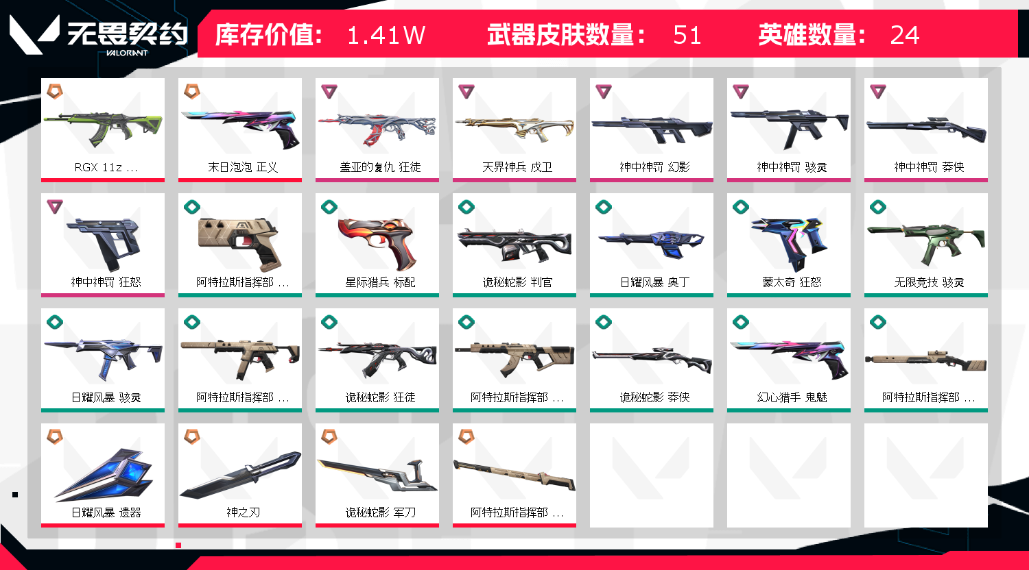 • 皮肤资产价值: 14100