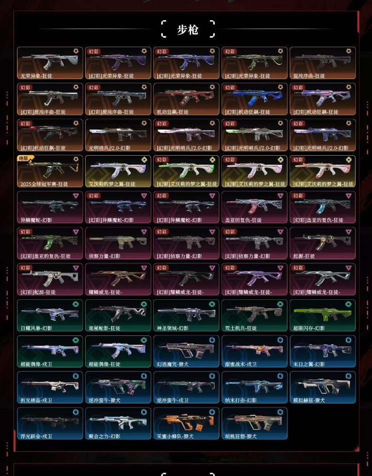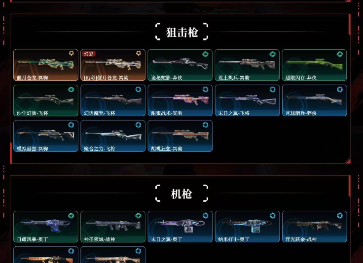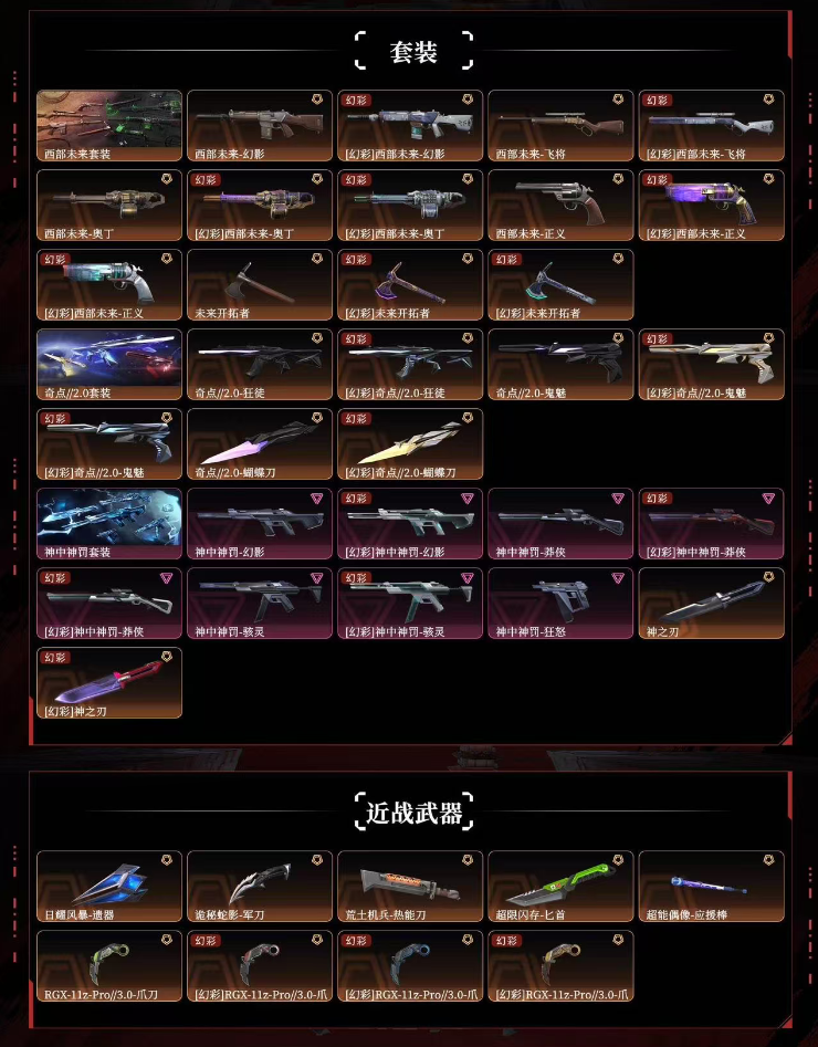 西部未来套♥起点2.0套♥神中神套♥显卡刀♥光荣混沌机动狂徒♥猫猫♥哨兵2.0♥盖亚起源狂徒♥侦查魔