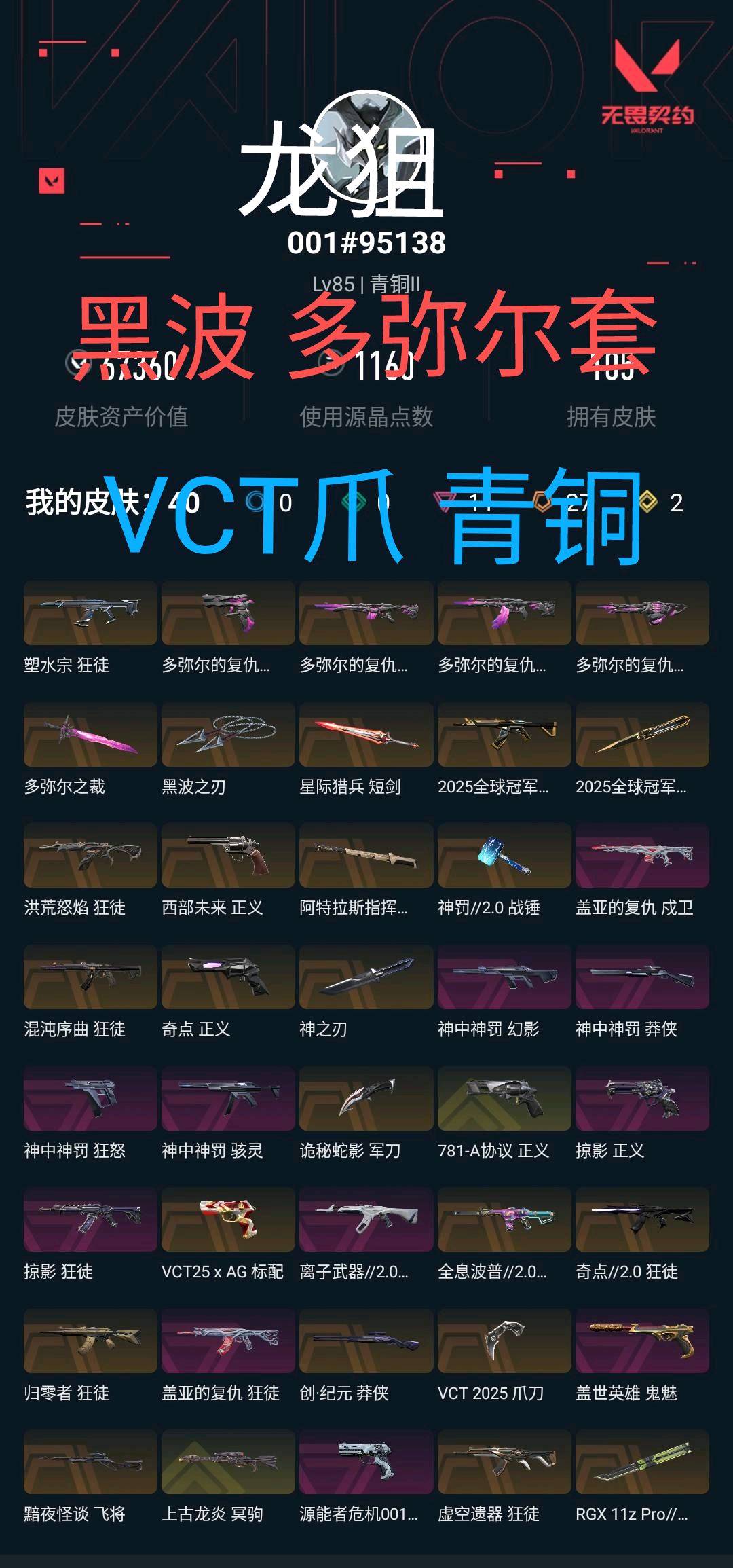 冻结申请号主辅助 24h自动解开 等待5分钟即可 郑重声明 ✨本人商户多年 所属所有账号均在派出所备案 若出现 账号封禁/毁号等情况会直接联系平台取得联系 平台会直接联系当地派出所报案! 请租客文明游戏 不要开挂或挂机! ✨!开挂导致10年必追究 不拿到补偿不罢休!✨ 老板们炸鱼别杀50个 不然账号会被游戏直接冻结 祝老板们天天开心 愉快游玩 收藏到时间不下线;黑波之刃,VCT 2025 爪刀,盖亚的复仇 狂徒,虚空遗器 狂徒,洪荒怒焰 狂徒,掠影 狂徒,混沌序曲 狂徒,
