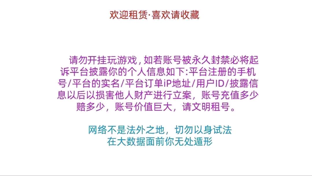 • 租号限制:起租时间2小时,租号0次及以上才可租用此号