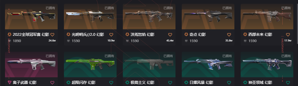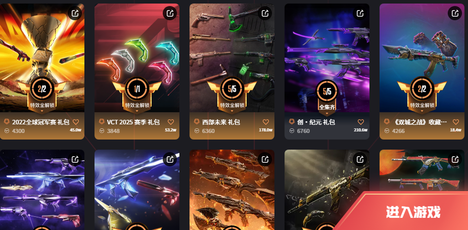 十三万五库存21冠军;西部未来 奥丁,奇点 战神,剥皮小刀,镭切,VCT 2025 爪刀,盖亚的复仇 狂徒,洪荒怒焰 狂徒,
