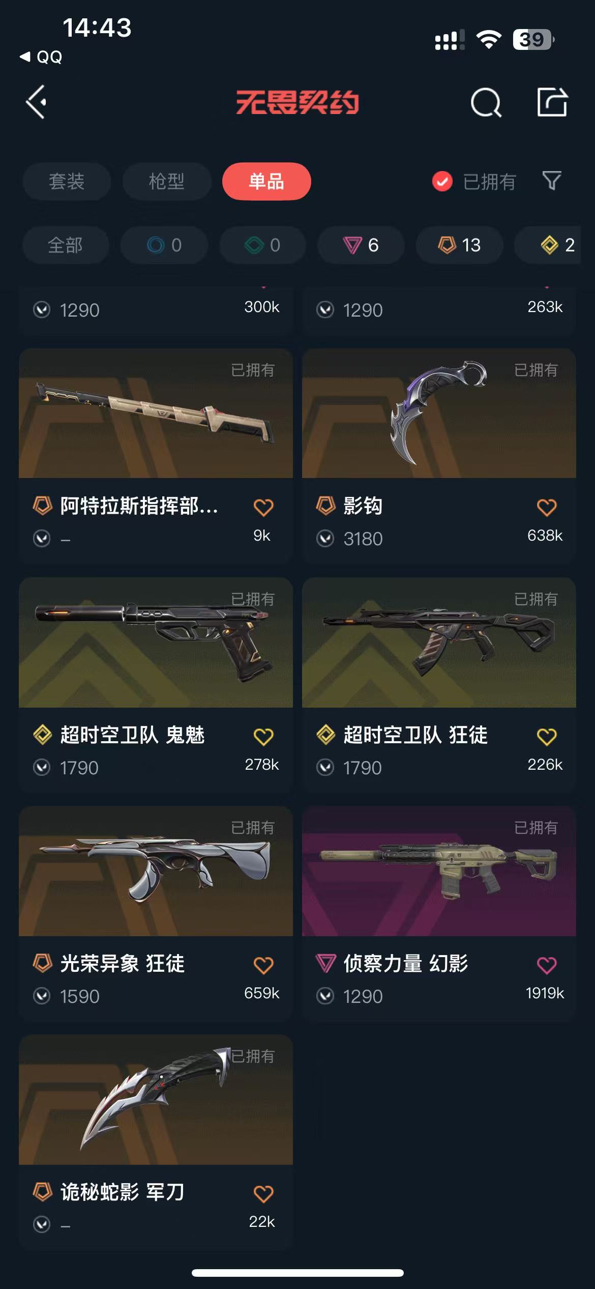 首页 > 租号大厅 > 无畏契约-wegame > wegame/wegame > 冻结秒解✨2025冠军套✨多弥尔狂徒✨超时空AK✨影钩✨光荣般若狂徒✨侦查黯夜幻影✨