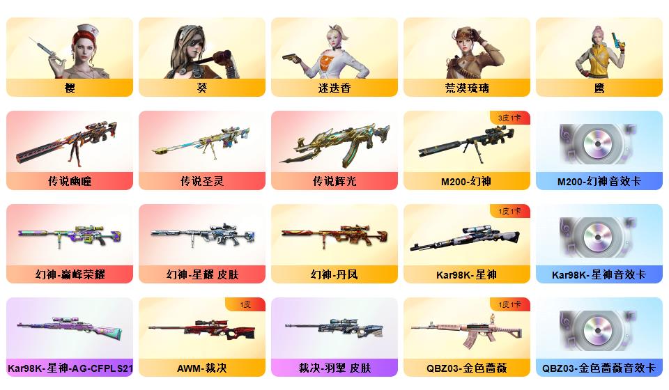 【幻神三件套+幻神星耀+幻神丹凤+幻神巅峰荣耀】【炽芒蝶刃破浪逐光】【星神三件套】【裁决羽擎】153v【6盘6烈3炼狱斯泰尔蝴蝶】/炽芒蝶刃/王者白虎/青龙/朱雀/qbz金色蔷薇/朱雀蛇隐踪/炼狱迷你小刚