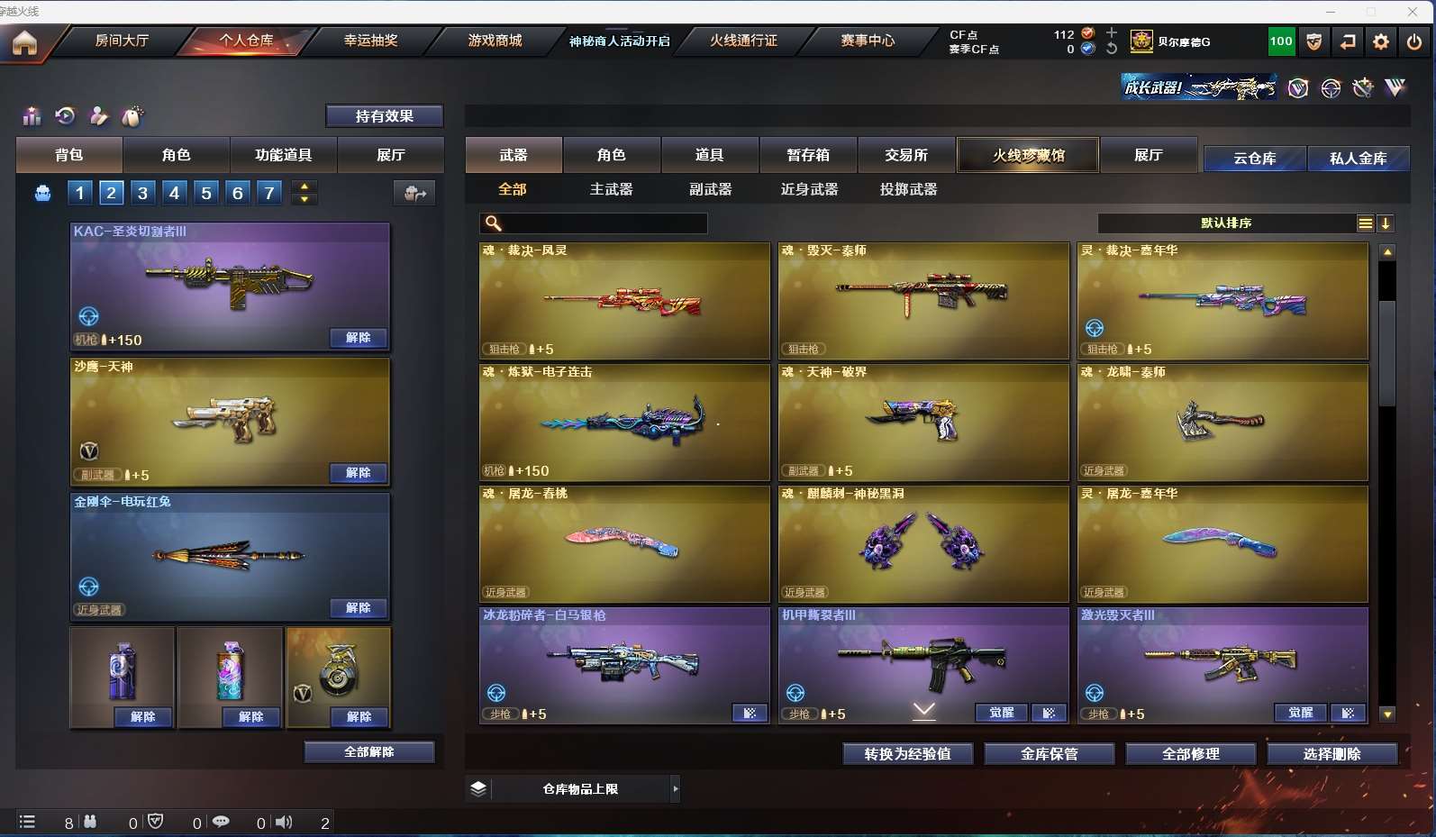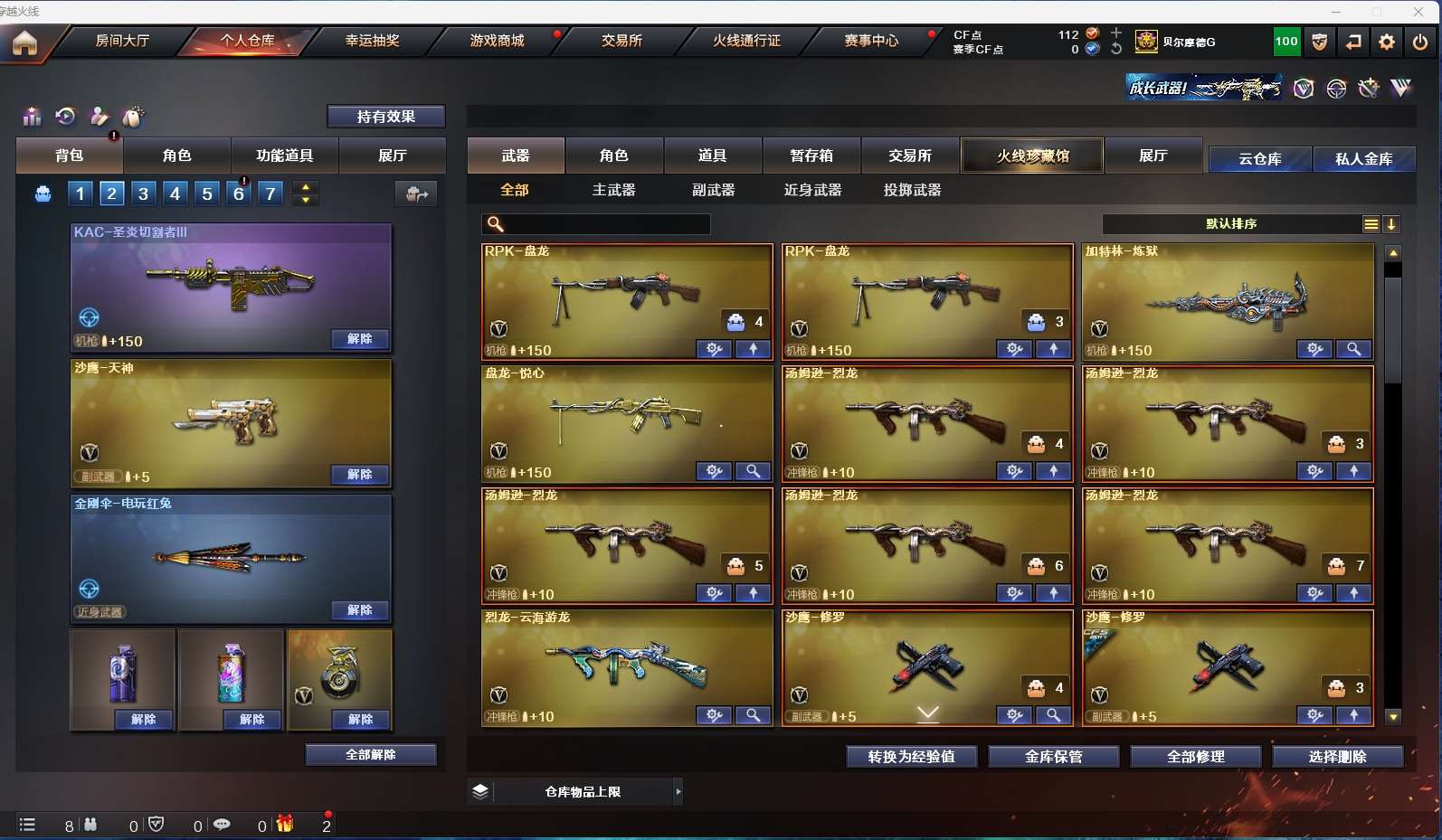 【亮点解析 生化6盘龙+炼狱 六烈+蝴蝶 蓝天白云名片】 【m200-幻神】 【白虎】 【qbz金色蔷薇】 【武圣套】 【火麒麟+音效卡】 【黑龙】 【雷神+音效卡】 【黑骑士+音效卡+白马银呛】 【毁灭+音效卡】 【极光】 【裁决】 【王者之怒】 【千变 无影 死神 天启 机械迷城】 【生化 6盘龙 炼狱 6烈龙 斯泰尔蝴蝶 】 【11手呛 修罗*5 天神*2 cop云龙】 【10近战 屠龙 擎天 麒麟刺 斩神刀雷暴*2】 【手雷 雷霆雷 雷暴雷*4 电竞装甲 】 【四防 王者魅影】 【角色 樱 乔伊教练 云海玲珑】 【火麒麟音效卡 毁灭音效卡 雷神音效卡 黑骑士音效卡】 【虎牙炫彩背包 动感闪耀炫彩背包 炫彩背包 云海游龙炫彩背包】;RPK-盘龙,QBZ03-金色蔷薇,M200-幻神,Scar Light-白虎,